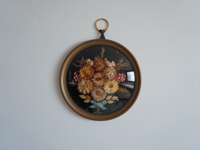 France / ガラスドームのドライフラワー壁飾り / フランス アンティーク