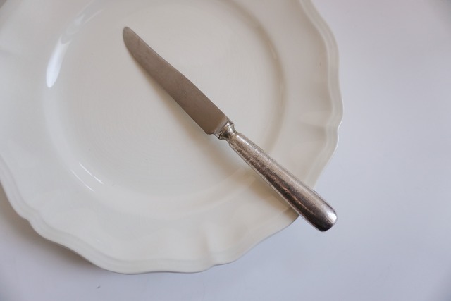 イギリスのシルバープレート(銀メッキ)のスプーン。無駄を削ぎ落としたシンプルでクラシカルなデザイン。 ヨーロッパのディナー用カトラリーは少し大きく感じますが、こちらはそれよりひとまわり小さいデザート用のスプーン。日本人の手に最もしっくりくるサイズ。カレーやスープなど幅広くお使いいただけます。 揃いで使えそうなフォークもご紹介しておりますのでペアで使っていただくのも素敵です。 17.5cm ※ゆうパケット配送可能 シルバー製品は使わずに放っておくとだんだんと黒ずんできます。お手入れしていただくことでまた輝きを取り戻します。美しさを保つためにぜひ日常的にお使いください。 当店で扱っている品物は、アンティーク、ブロカント、ヴィンテージ、古道具、骨董品等の古い品になります。使い込まれた古傷や経年変化こそが古物の魅力だと感じ、買い付けをしております。特に目立つ傷や汚れは画像と説明で記しますが、記載されていない細かな傷汚れはあるものだとあらかじめご了承いただいた上でお買い上げいただきますようお願い申し上げます。破損品以外の返品交換は一切受け付けておりませんので、ご注意ください。