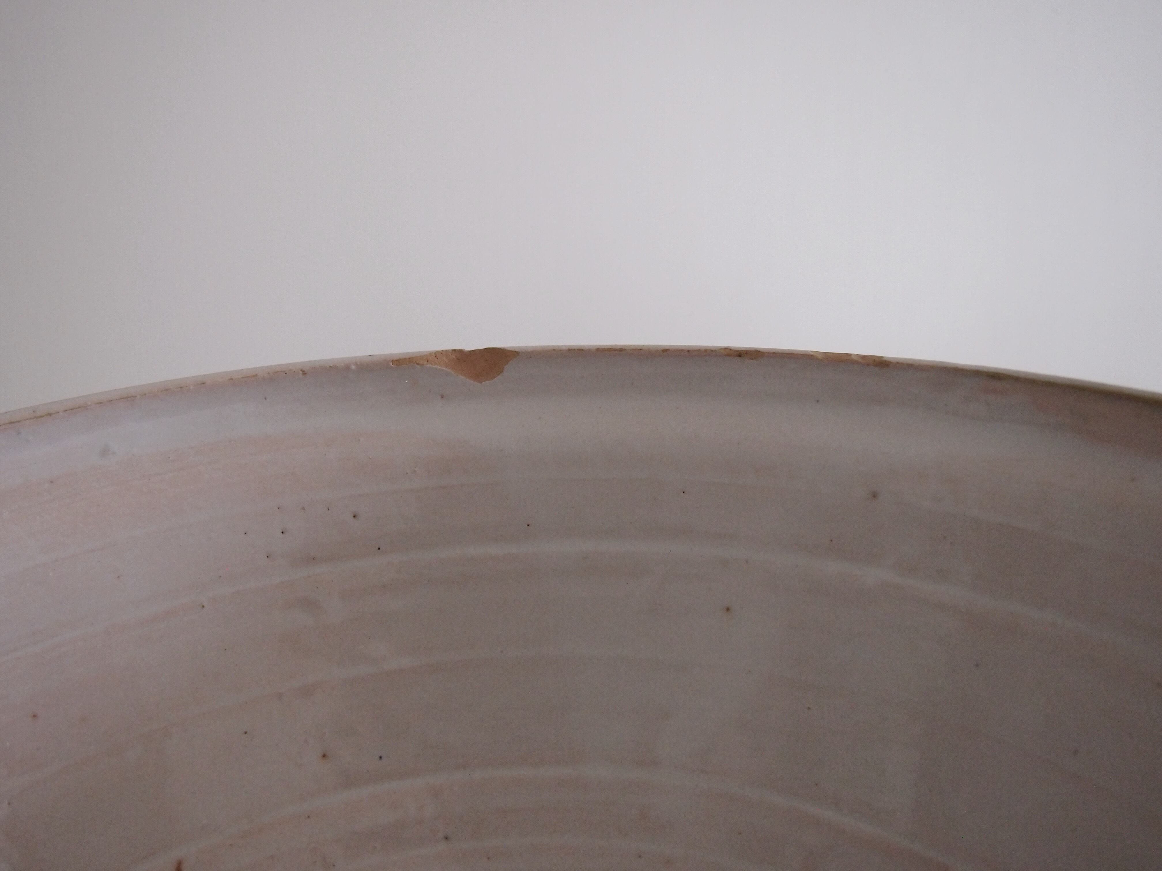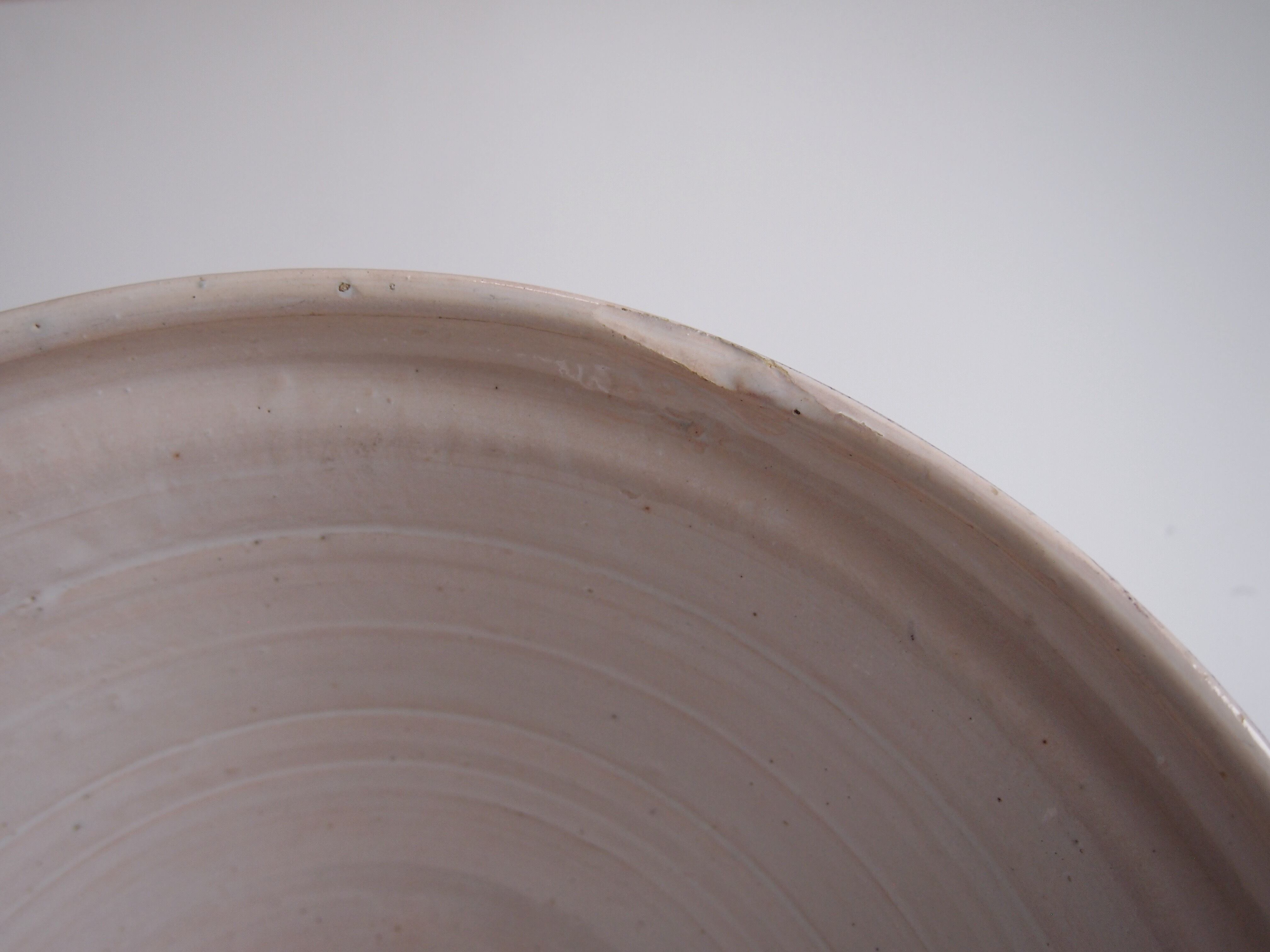 灰白色の釉薬がかかった見込み部分には細かな貫入が入っています。