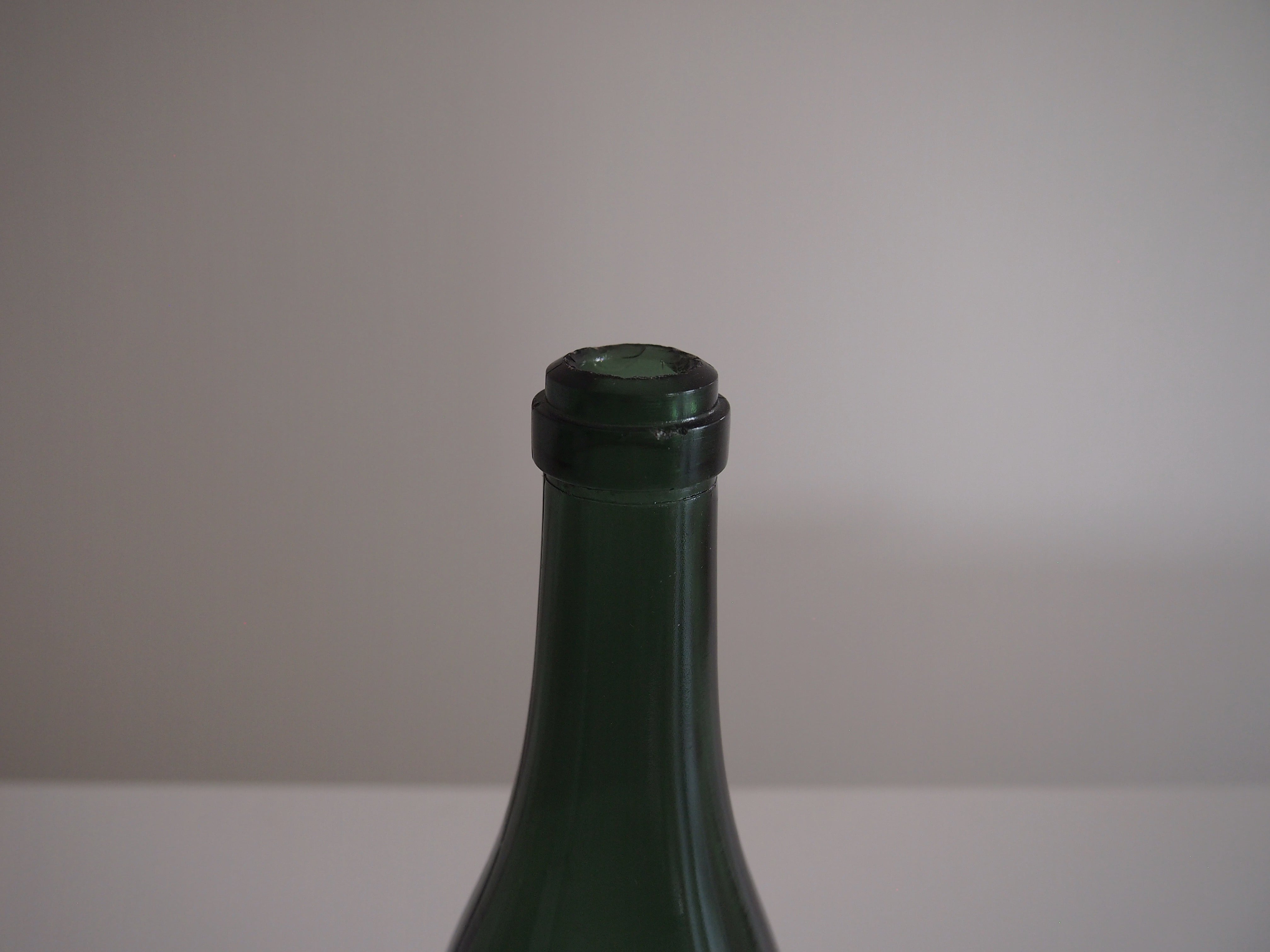 フランスの古いワインボトル。深いグリーンが綺麗。古いガラスならではの気泡やとろみが味となっている瓶です。底の窪みに親指を引っかけて注ぎます。