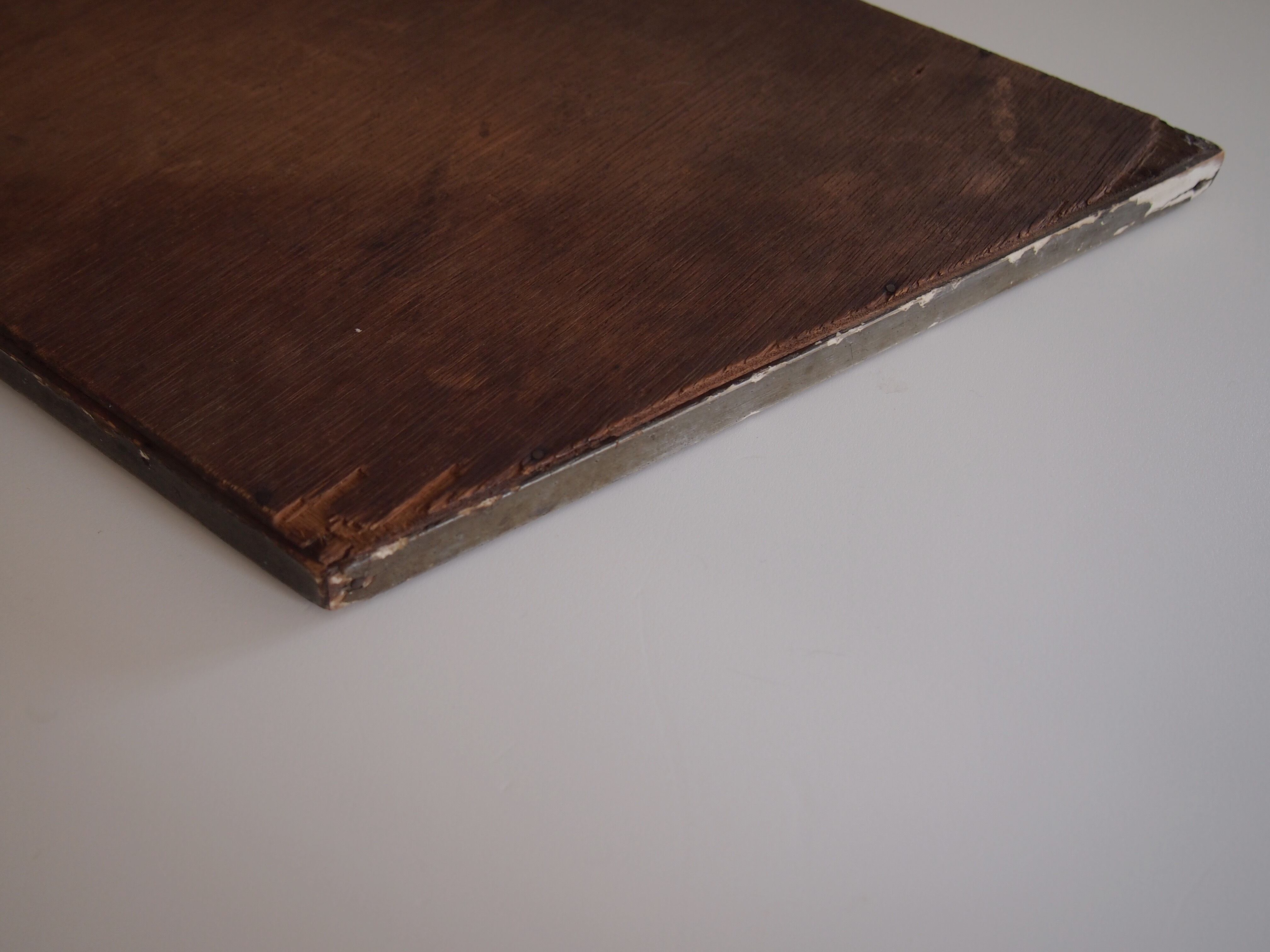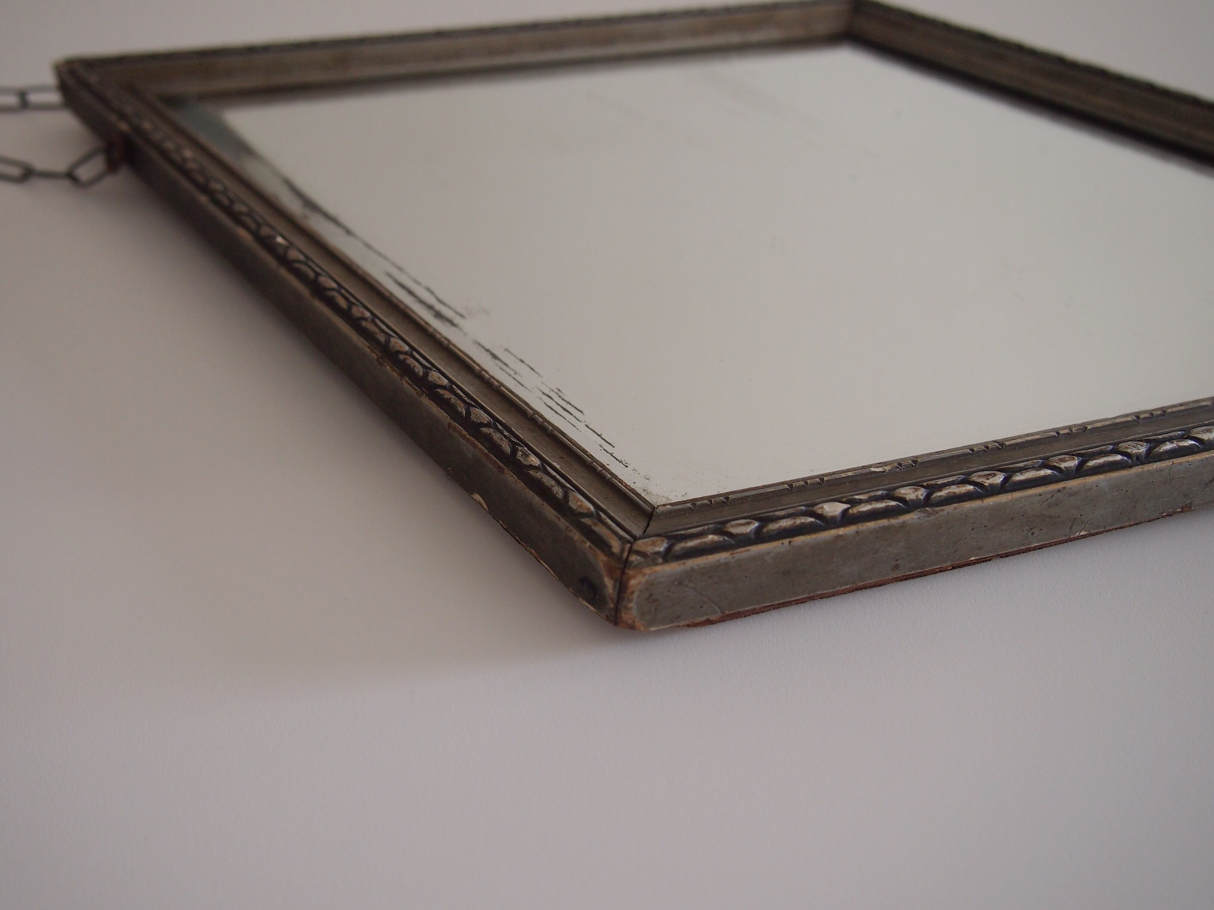 フレームに経年による欠けが見られますが、それもアンティークらしい良い雰囲気になっています。鏡面にもところどころ汚れがございますが、実用に差し支えない程度のものです。