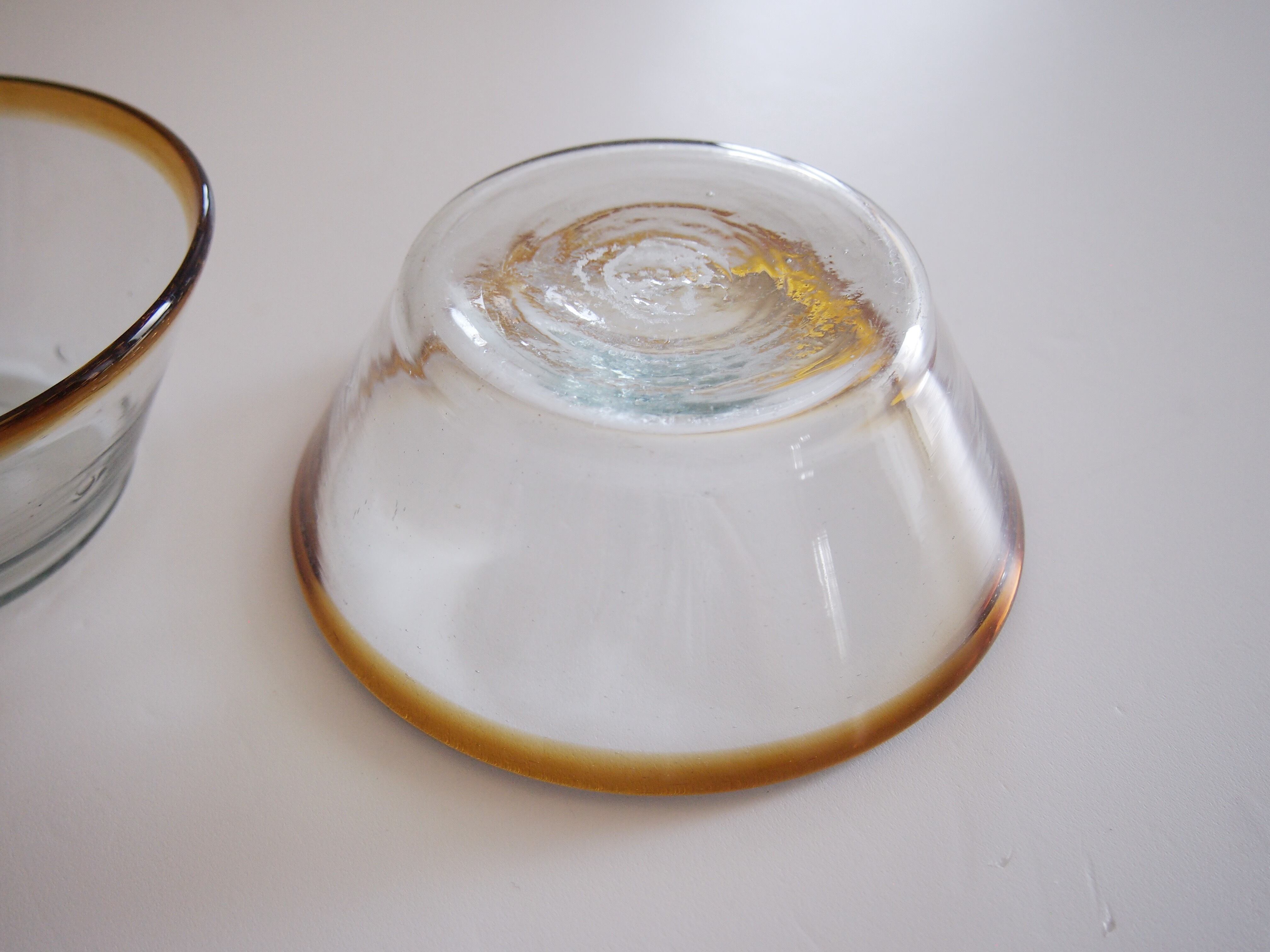 職人がひとつひとつ手作業で作り上げた吹きガラスの製品。成形時にできた気泡、とろみ、うねりがございます。吹きガラスならではのゆらゆらとした佇まいをお楽しみください。