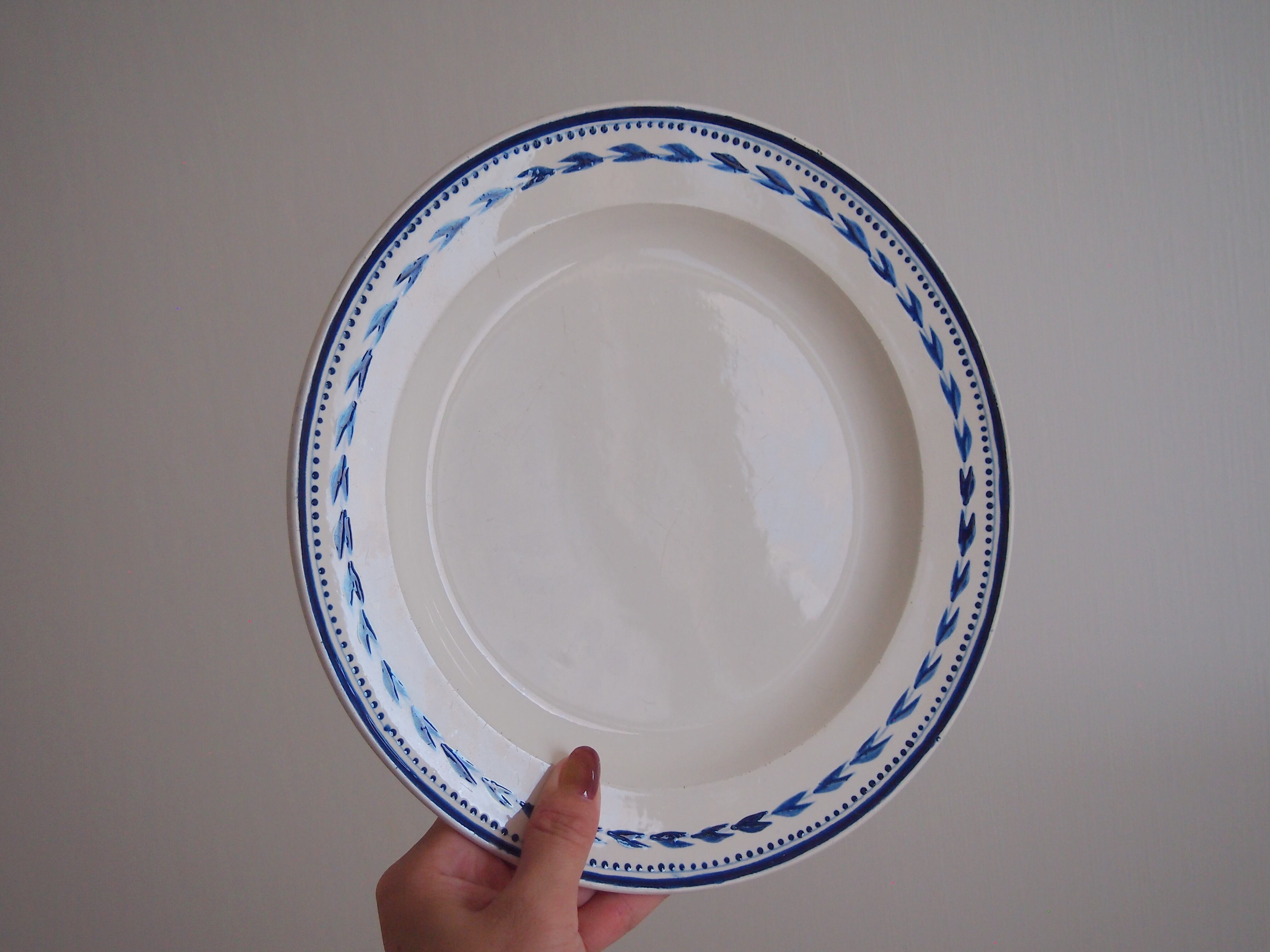 月桂樹の葉っぱをモチーフにしたデザインは、当時人気でいろんな窯が出していました。クレイユのものはたまに見かけますがモントローのものは滅多に見られません。