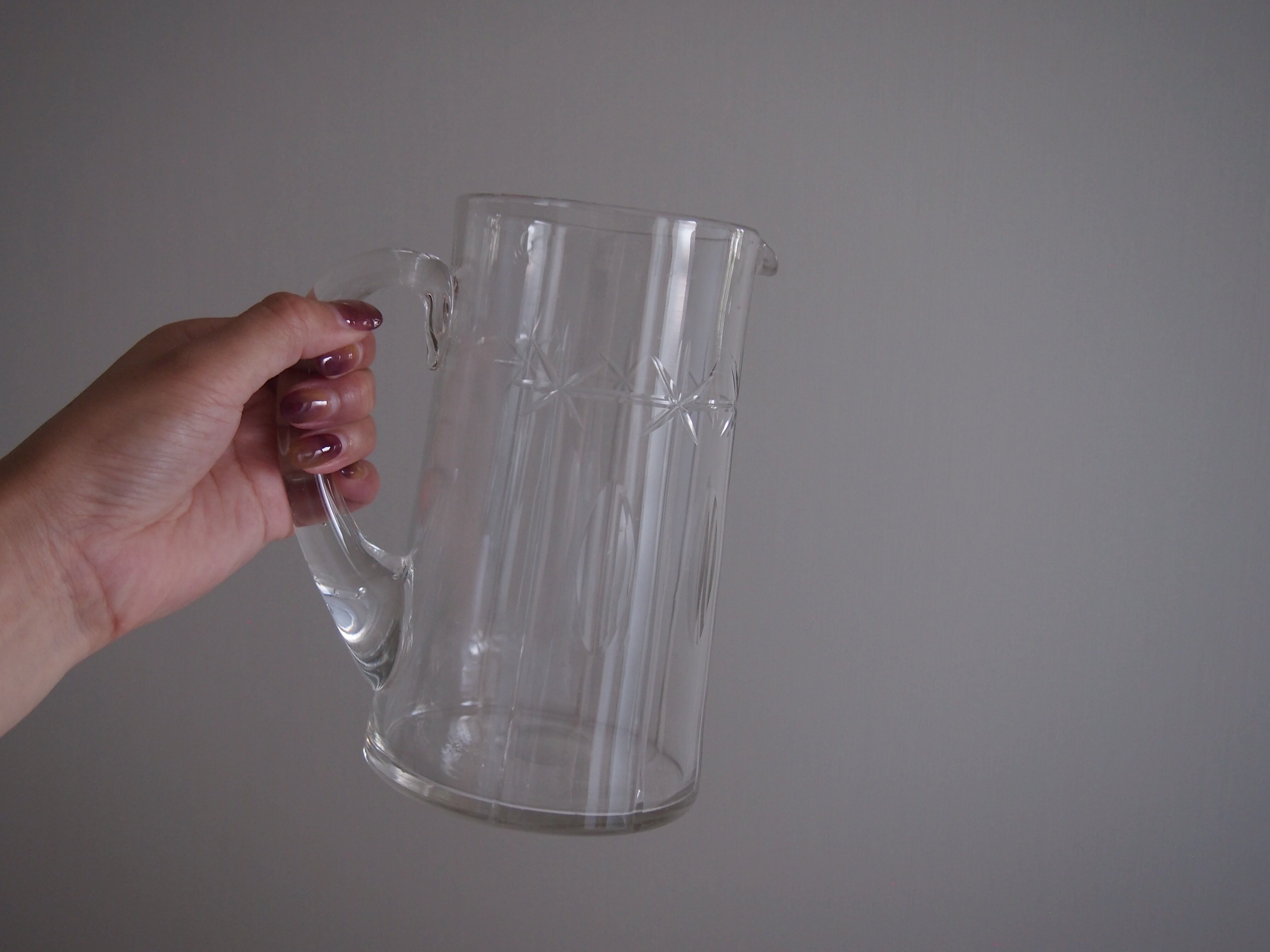 1920年頃に作られたマウスブロー(吹きガラス)の水差し。花瓶としても使えるので、ひとつあると便利です。暑い季節には、お水とたっぷりのハーブやライムを入れてゲストをおもてなしするのもいいですね◎