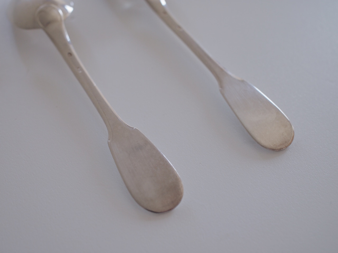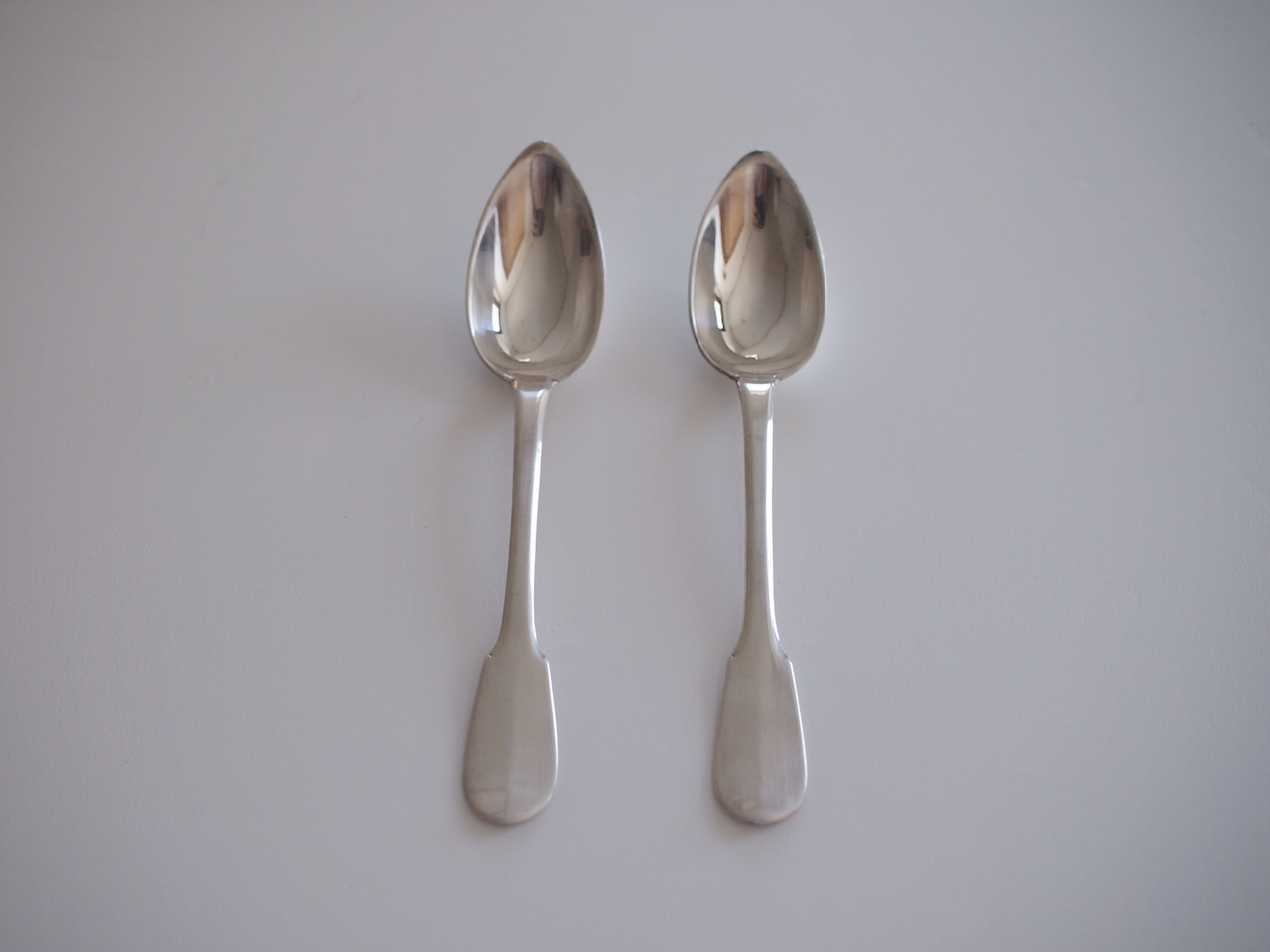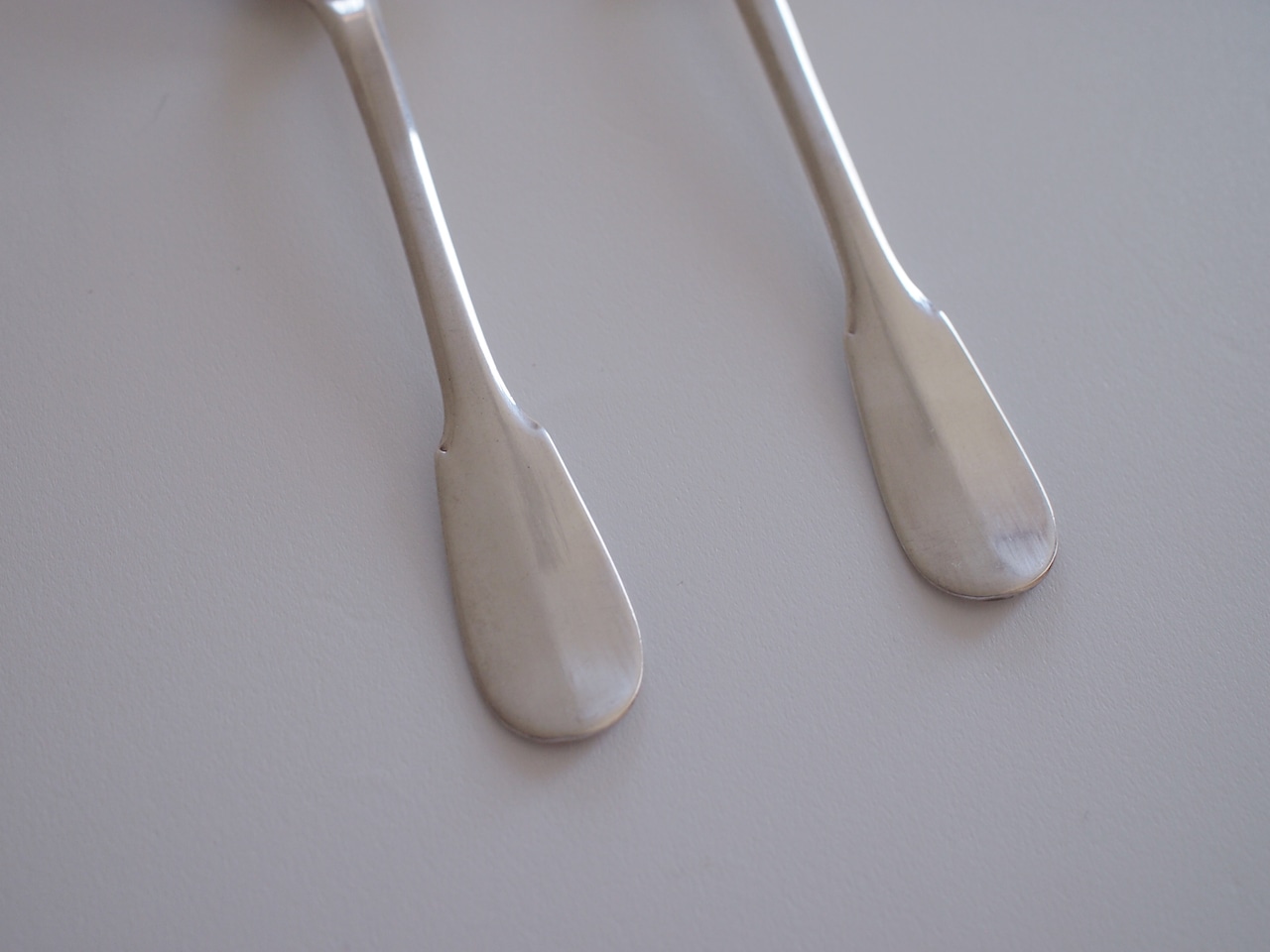 言わずと知れた高級銀食器ブランド Christofleのシルバープレートのスプーン。Cluny(クルニー)というモデル。弦楽器をモチーフにしたシルエットは一般的にFiddle(フィドル)の愛称でも親しまれています。