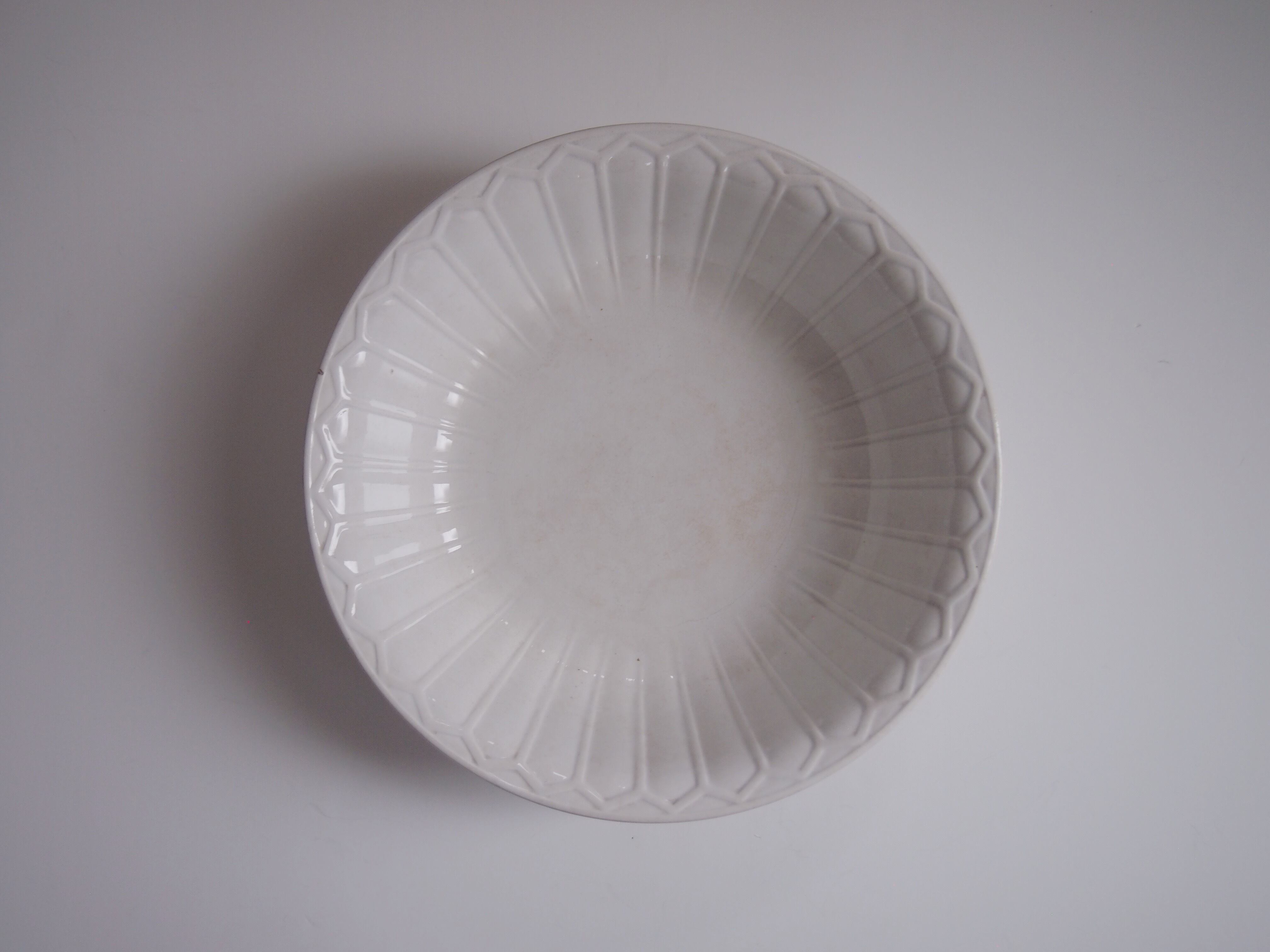 フランス digoin sarreguemines (ディゴワン サルグミンヌ)の白いサラディエ。レリーフ模様の陰影が美しく、凛とした優美な印象です。