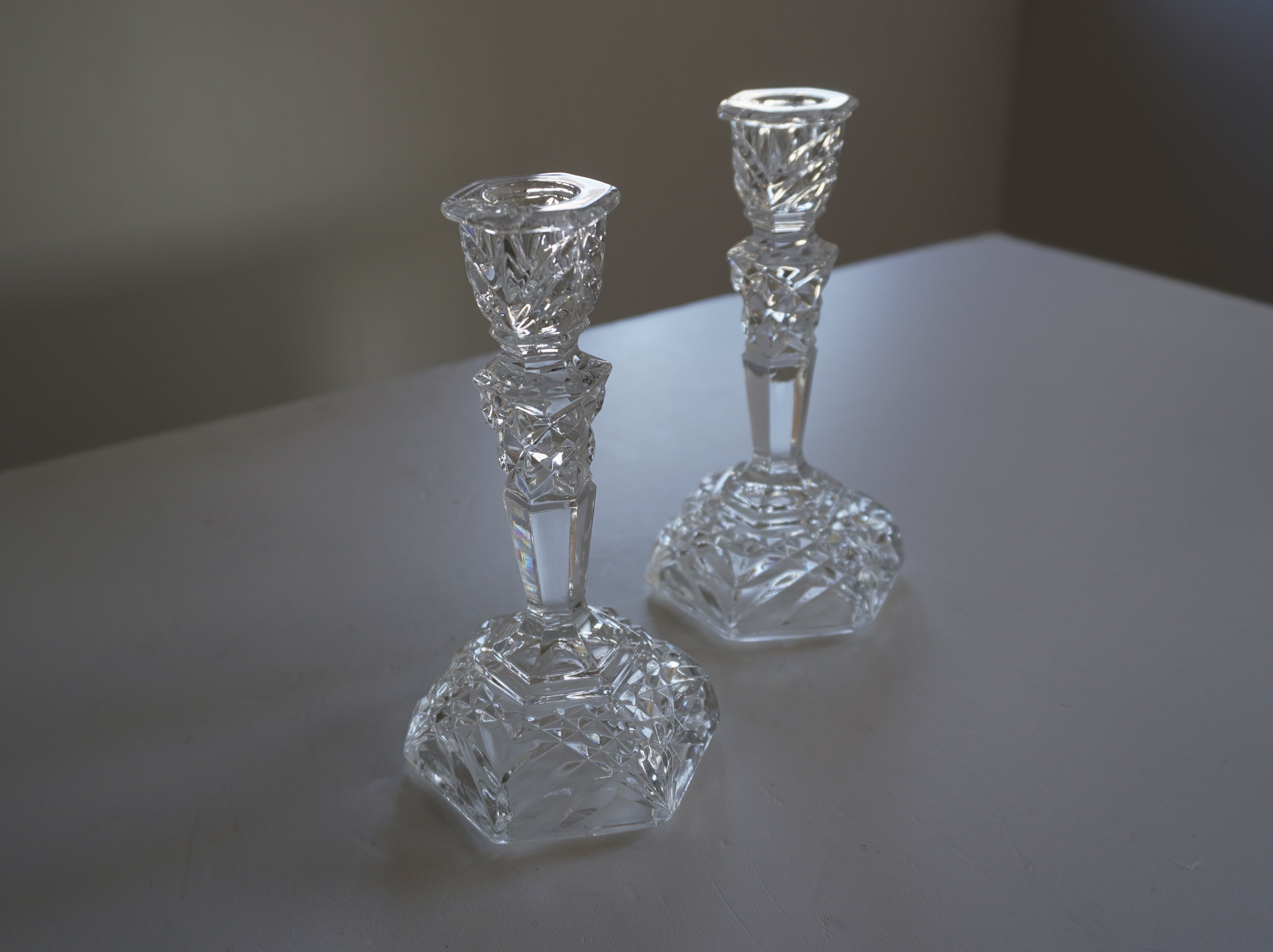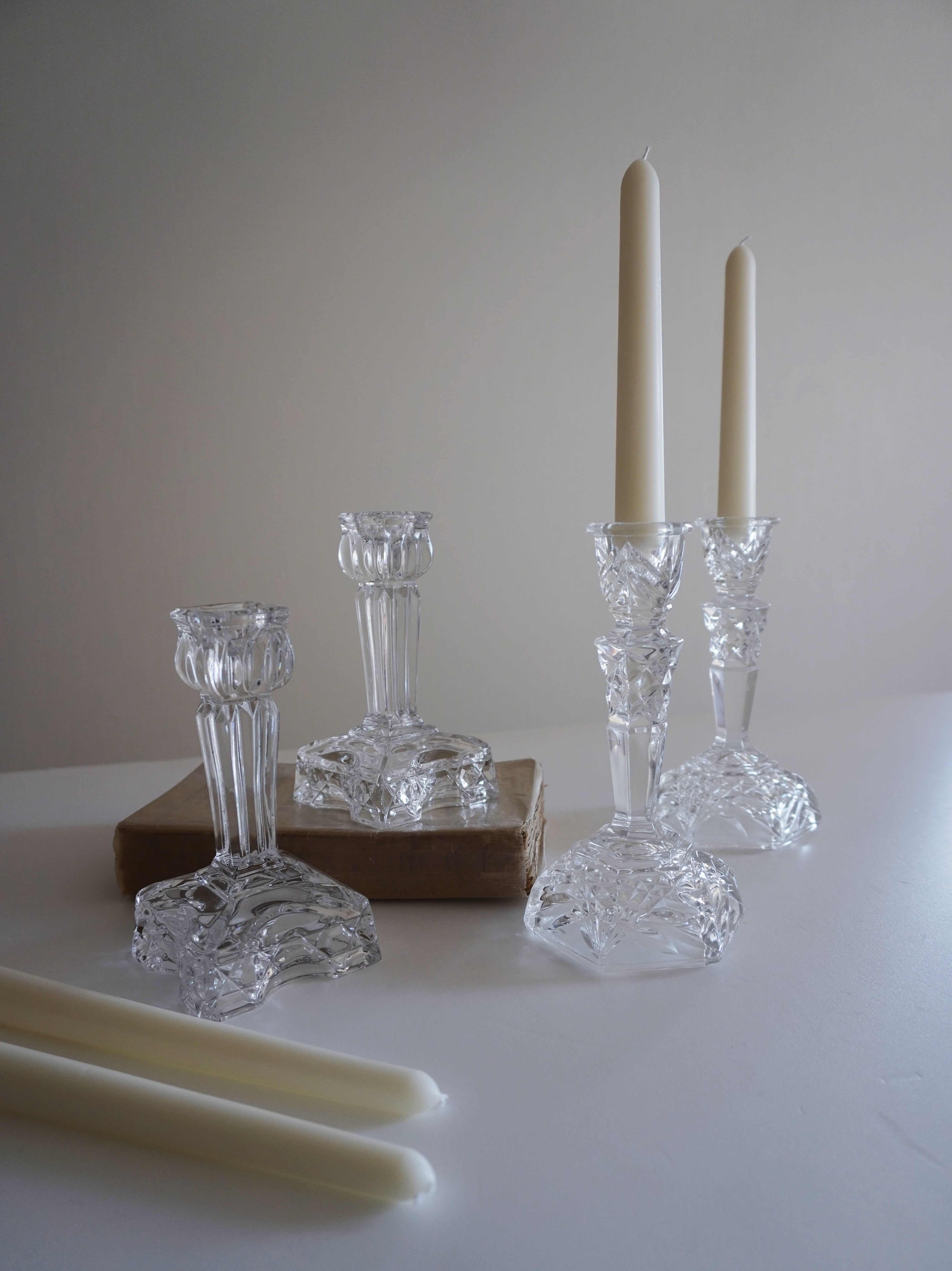 クリスタルガラス製のキャンドルスタンド。爪で弾くとキーンと綺麗な音が鳴ります。