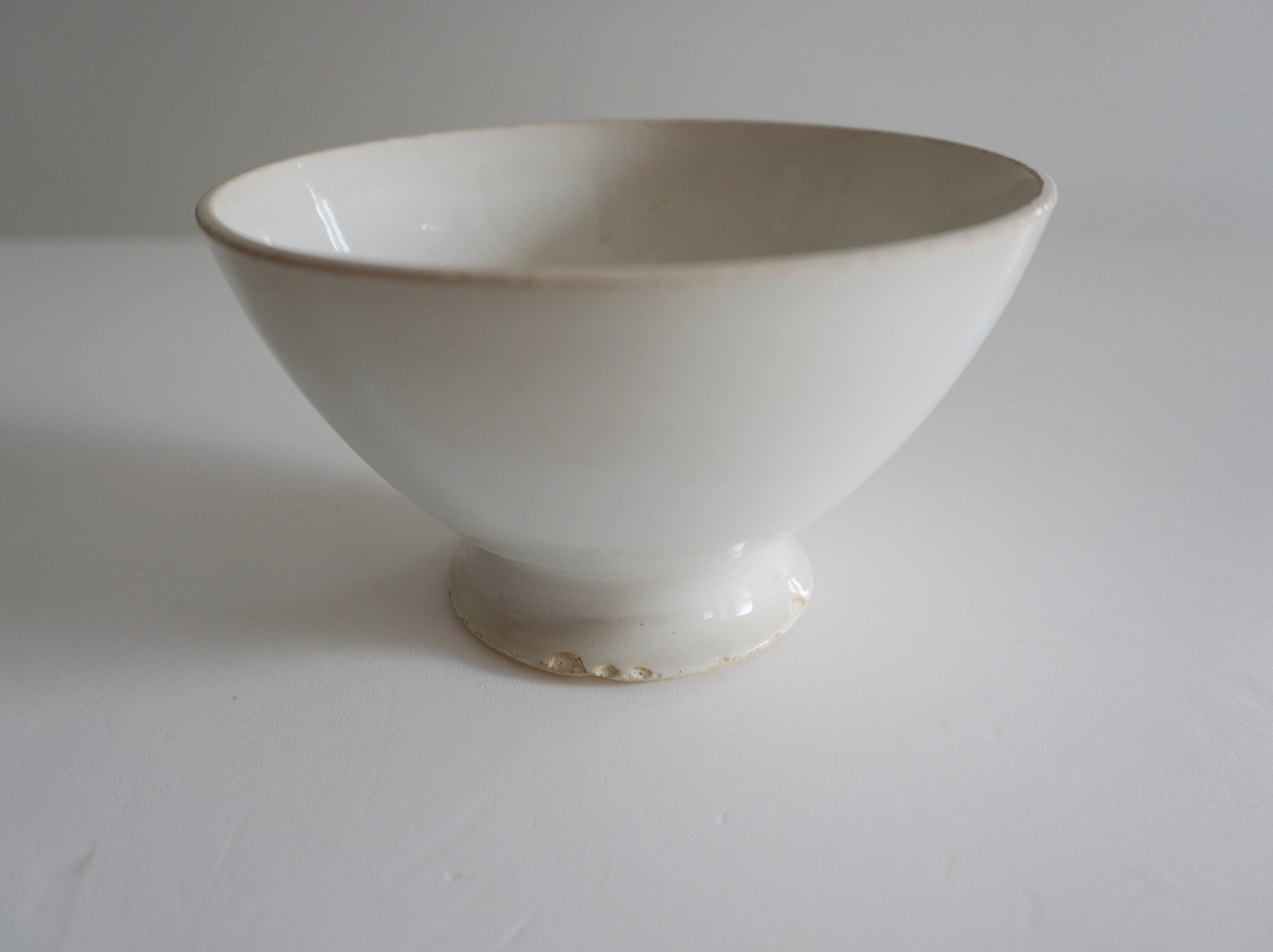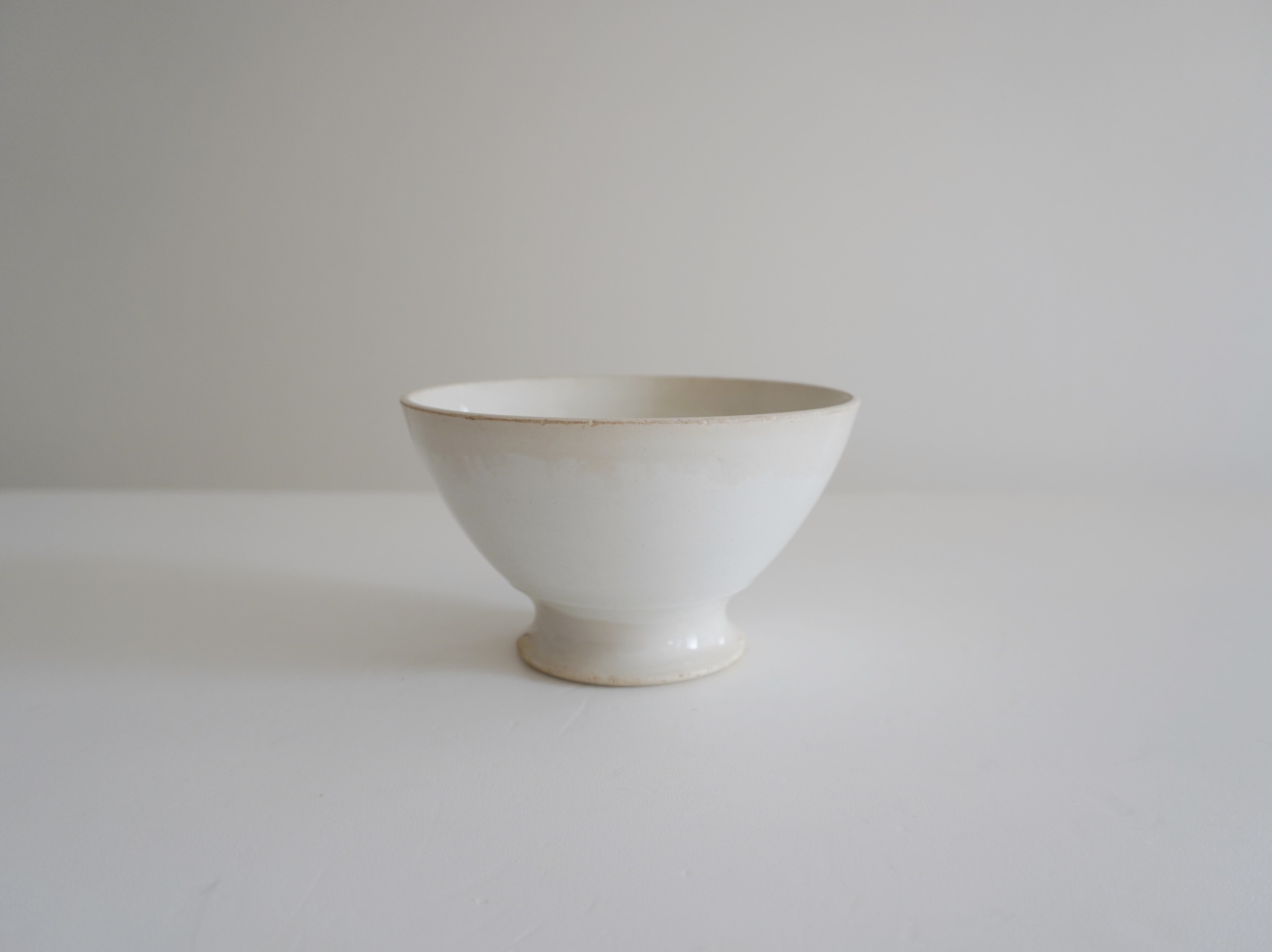 フランスのカフェオレボウル。柔らかなエクリュ色の肌にベージュの染まりが良い味わい。アンティークらしい佇まいに見惚れてしまいます。すっと高さがあり凛としたフォルムも魅力です。