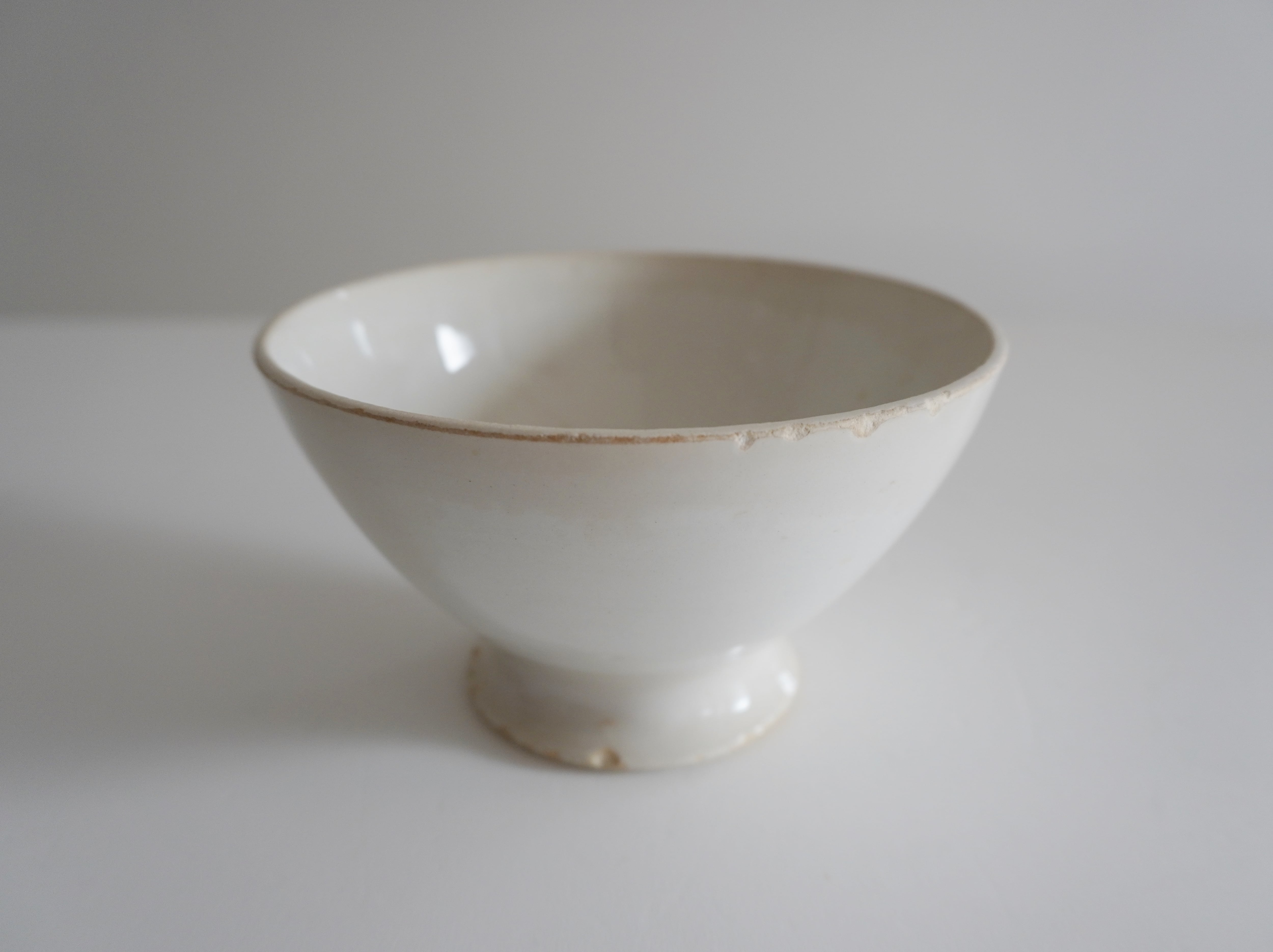 染み、欠けが見られる品です。使い込まれた器の味わいとしてお楽しみいただける方に。金継ぎを施して新たな魅力を引き出していただくのも◎