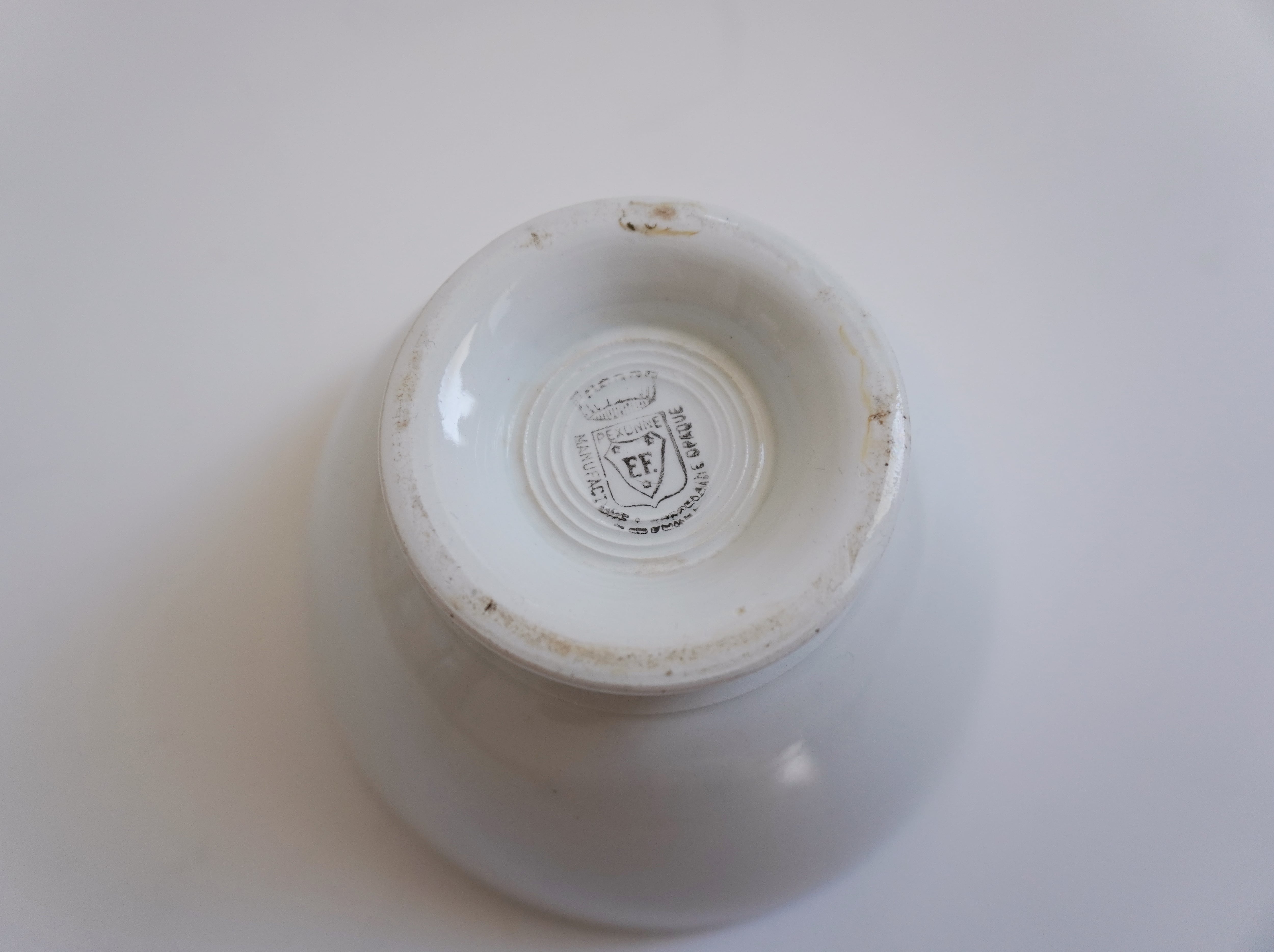 フランス PEXONNEのカフェオレボウル。刻印から1857年から1905年の間に作られたものと読み取れます。