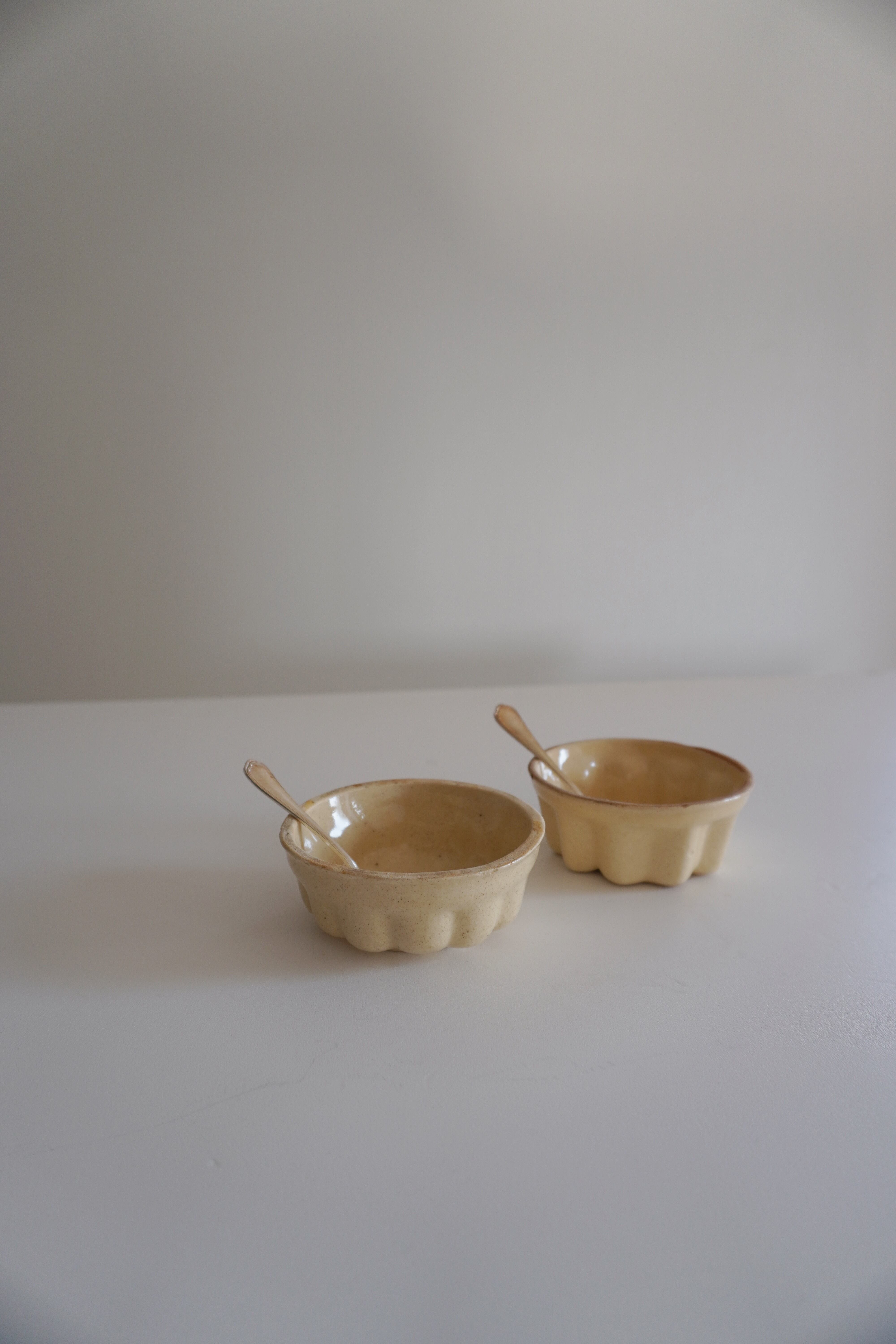 南フランスの蚤の市で見つけた耐熱のアンティークモールド。いくつかあった中からヒビ欠けの少ないものを2つ選び取りました。形が少し違いますが、大きさはほとんど同じで重ねることができます。セットではなくそれぞれでの販売です。