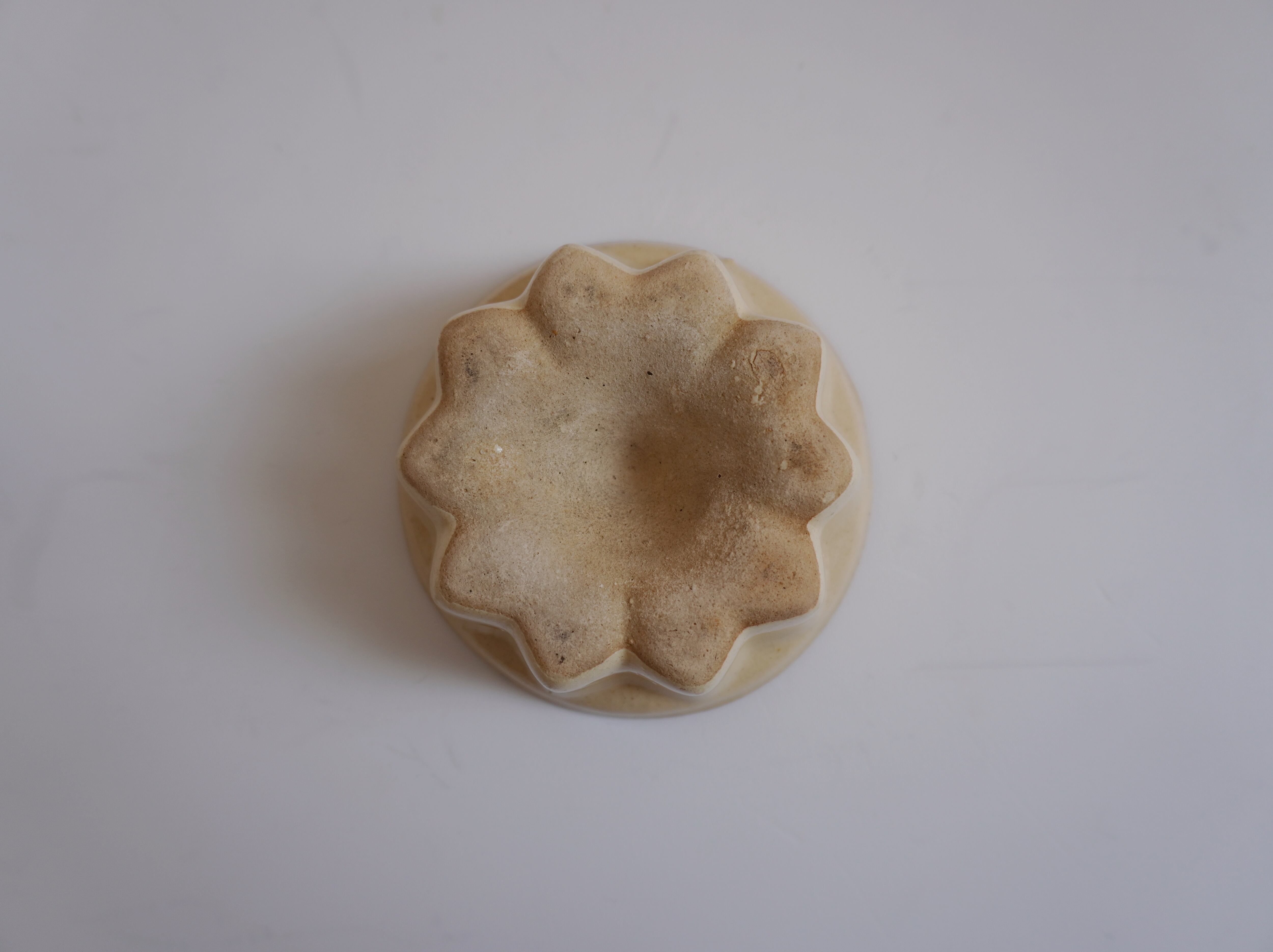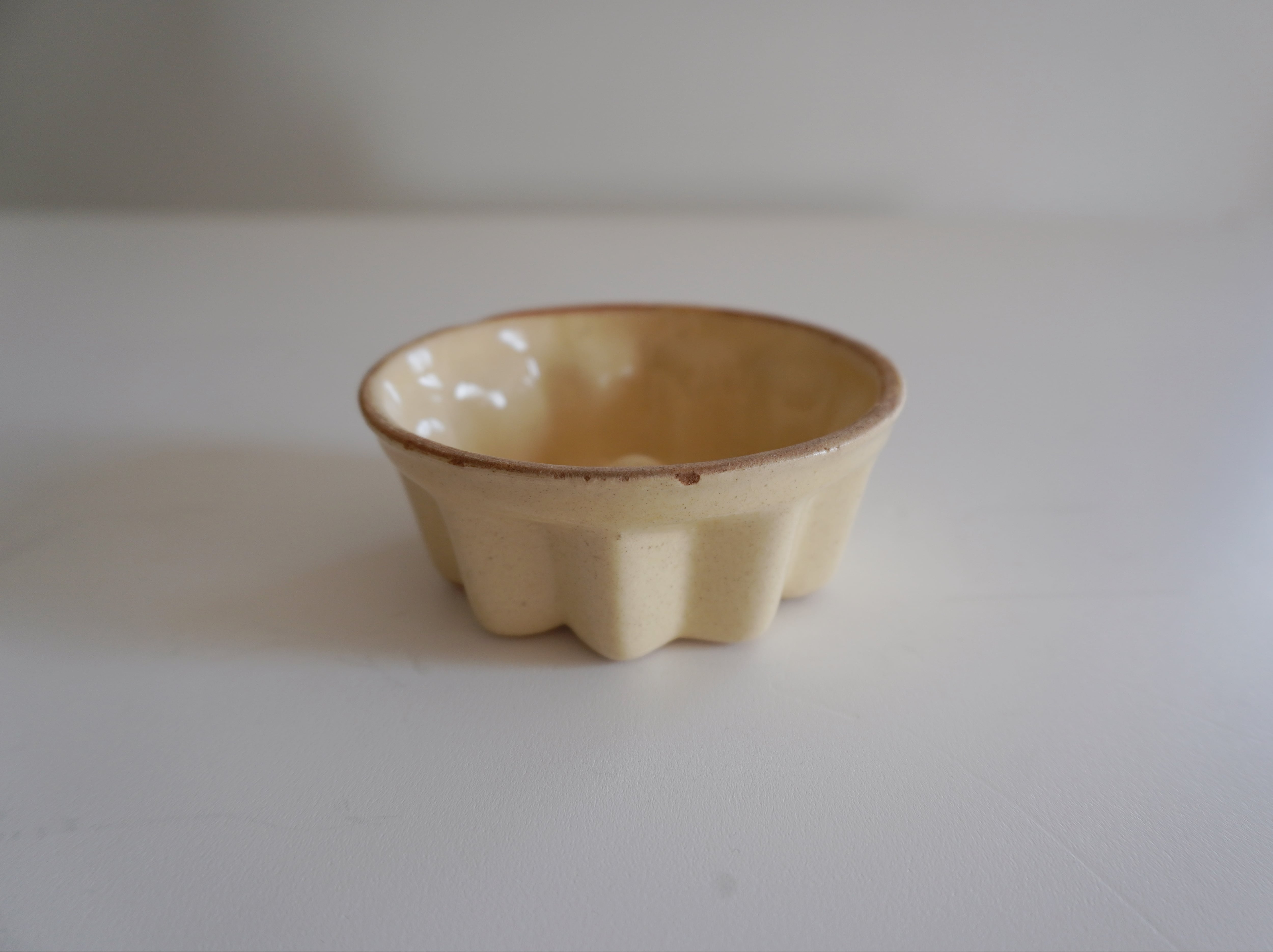 南フランスの蚤の市で見つけた耐熱のアンティークモールド。いくつかあった中からヒビ欠けの少ないものを2つ選び取りました。形が少し違いますが、大きさはほとんど同じで重ねることができます。セットではなくそれぞれでの販売です。