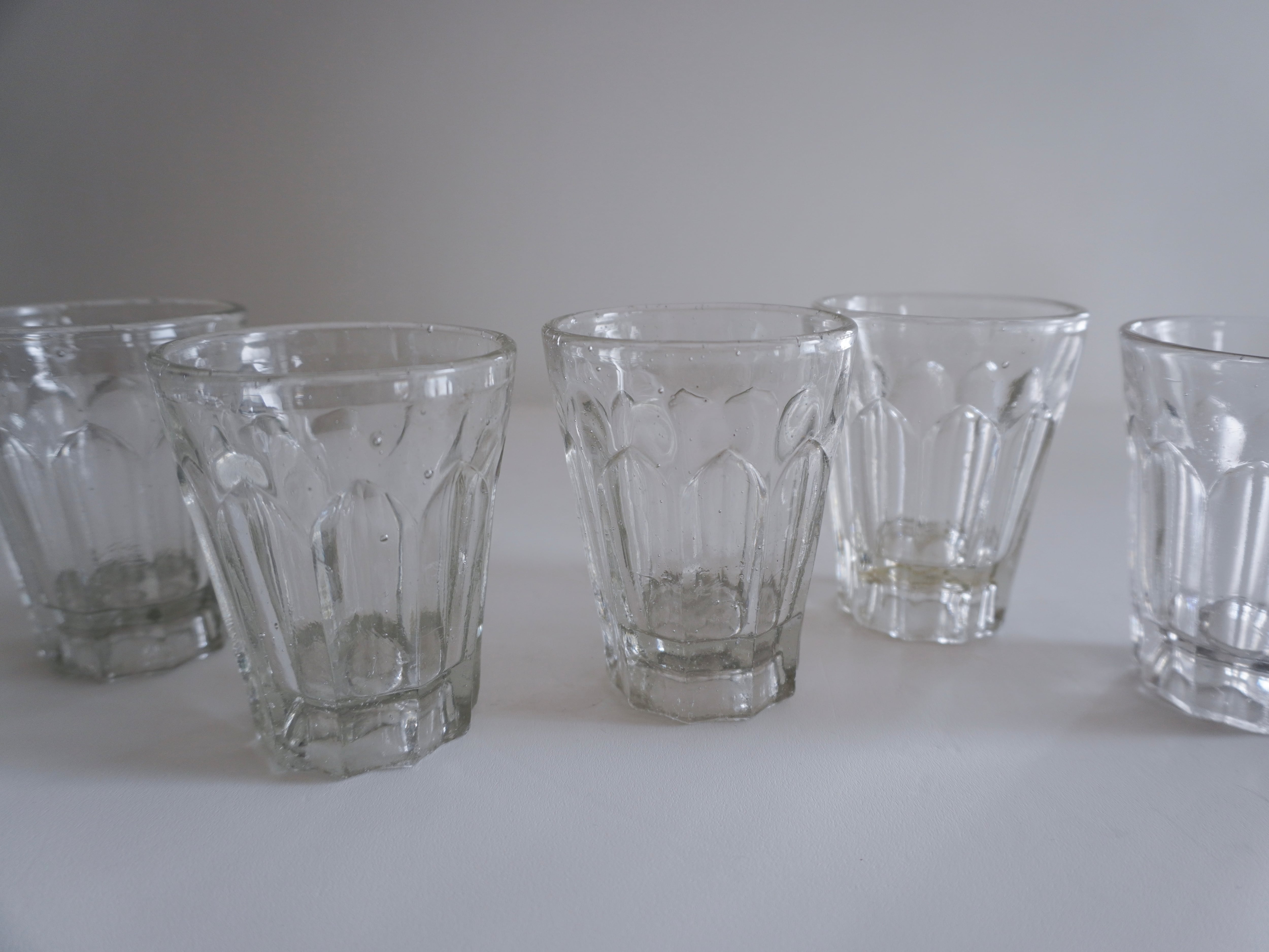 1900年代初期の剣先グラス。職人が型吹きでひとつひとつ息を吹き込んでつくったため、細かな気泡がたくさん入っており、とろとろとしたガラスのうねりが味わい深く人気です。
