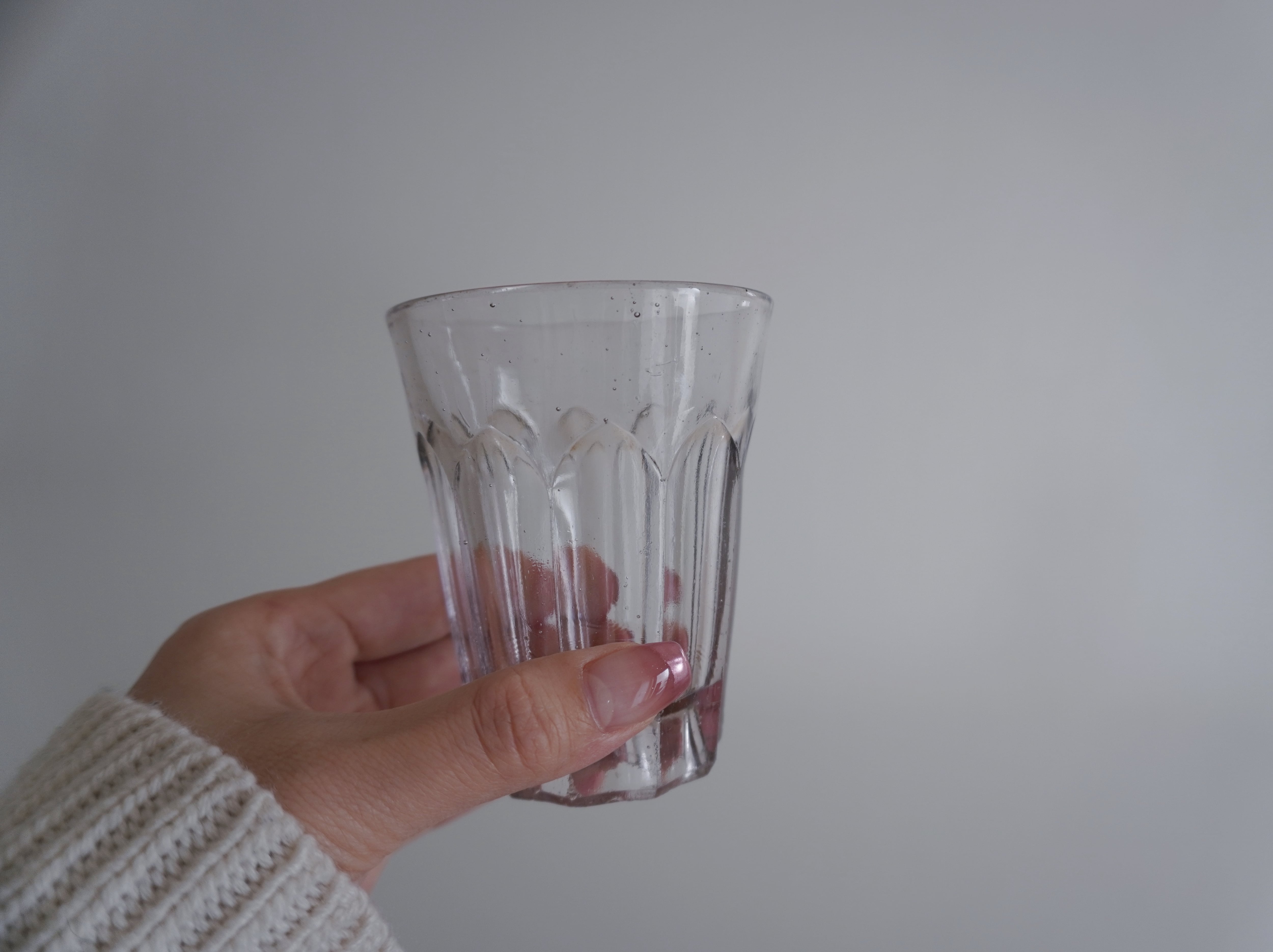 ぽってりとした厚みのあるグラスはウィスキーや焼酎、梅酒なんかにぴったり。もちろんお水やジュースにも◎