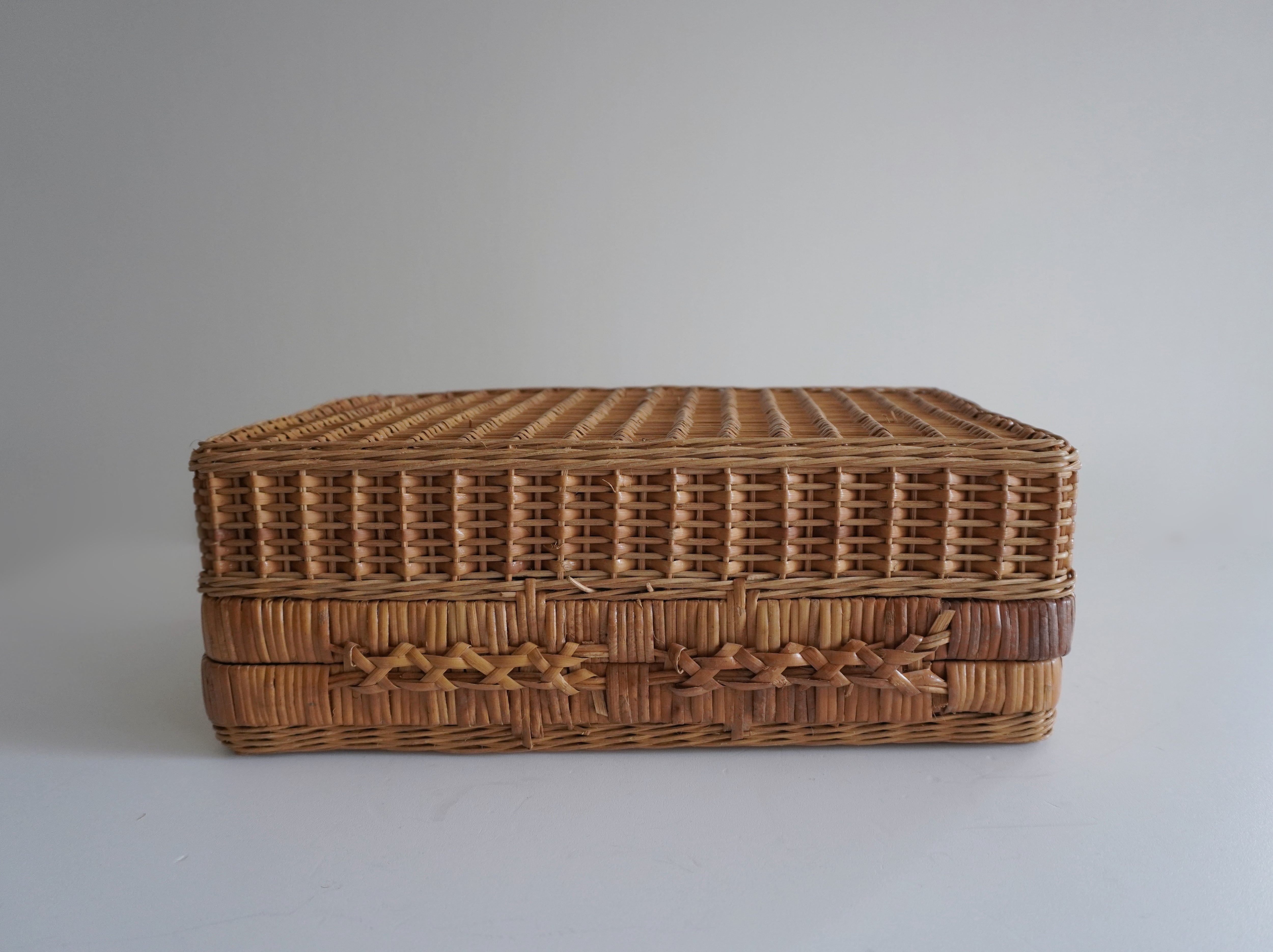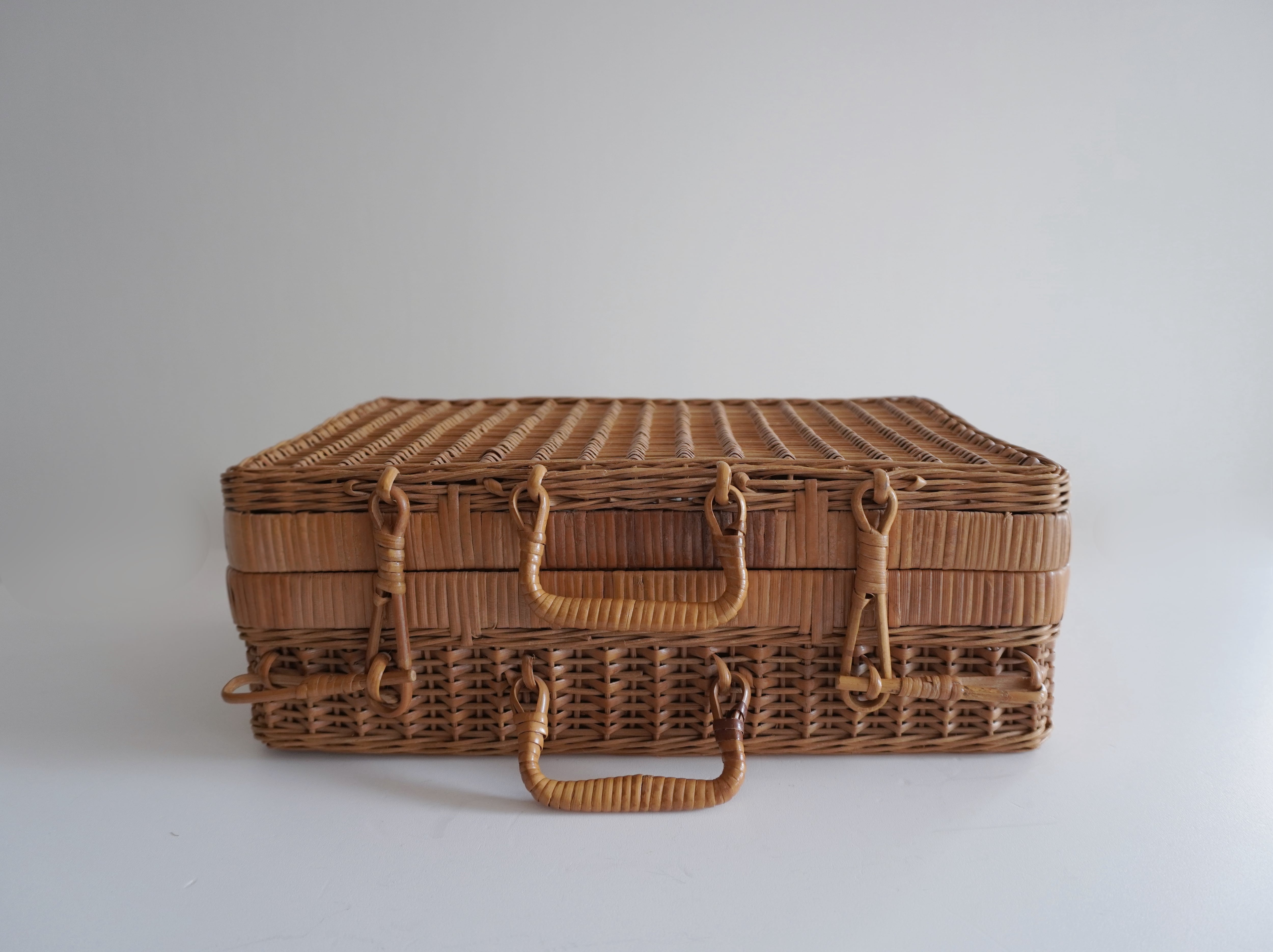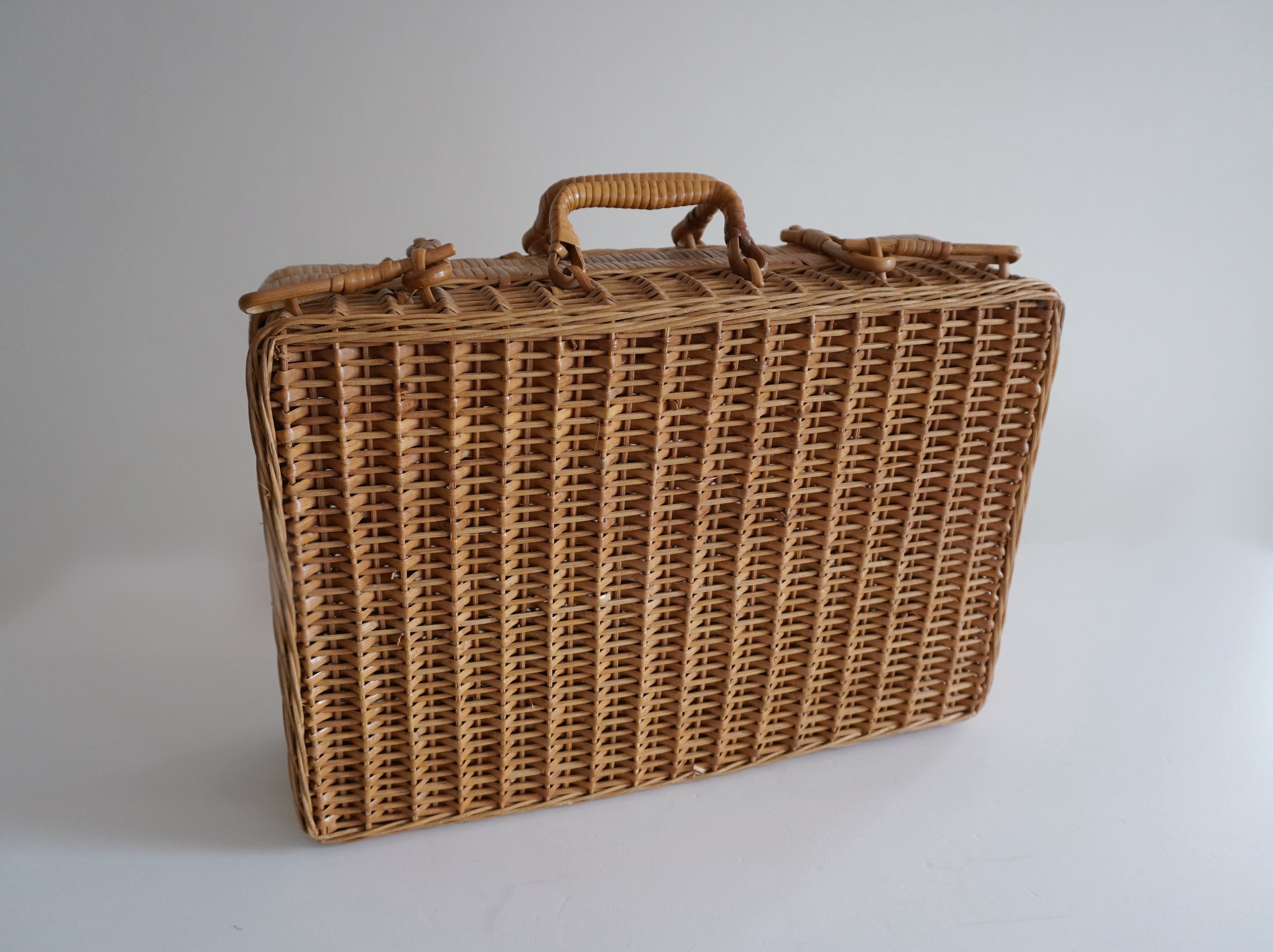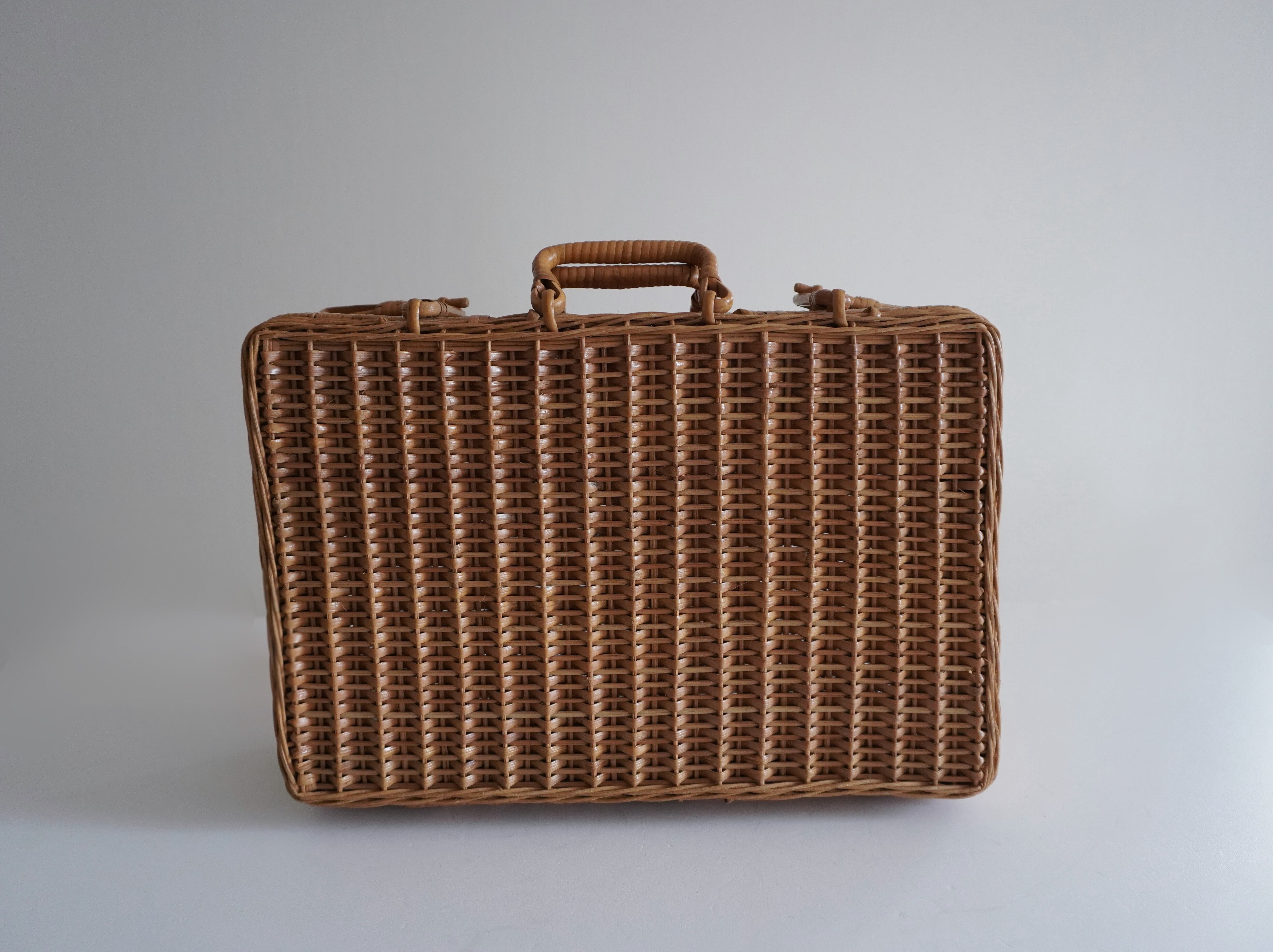 ラタンで編まれたかごバッグ。フランスのアンティークショップでも見かけますが、こちらは日本で見つけたもの。