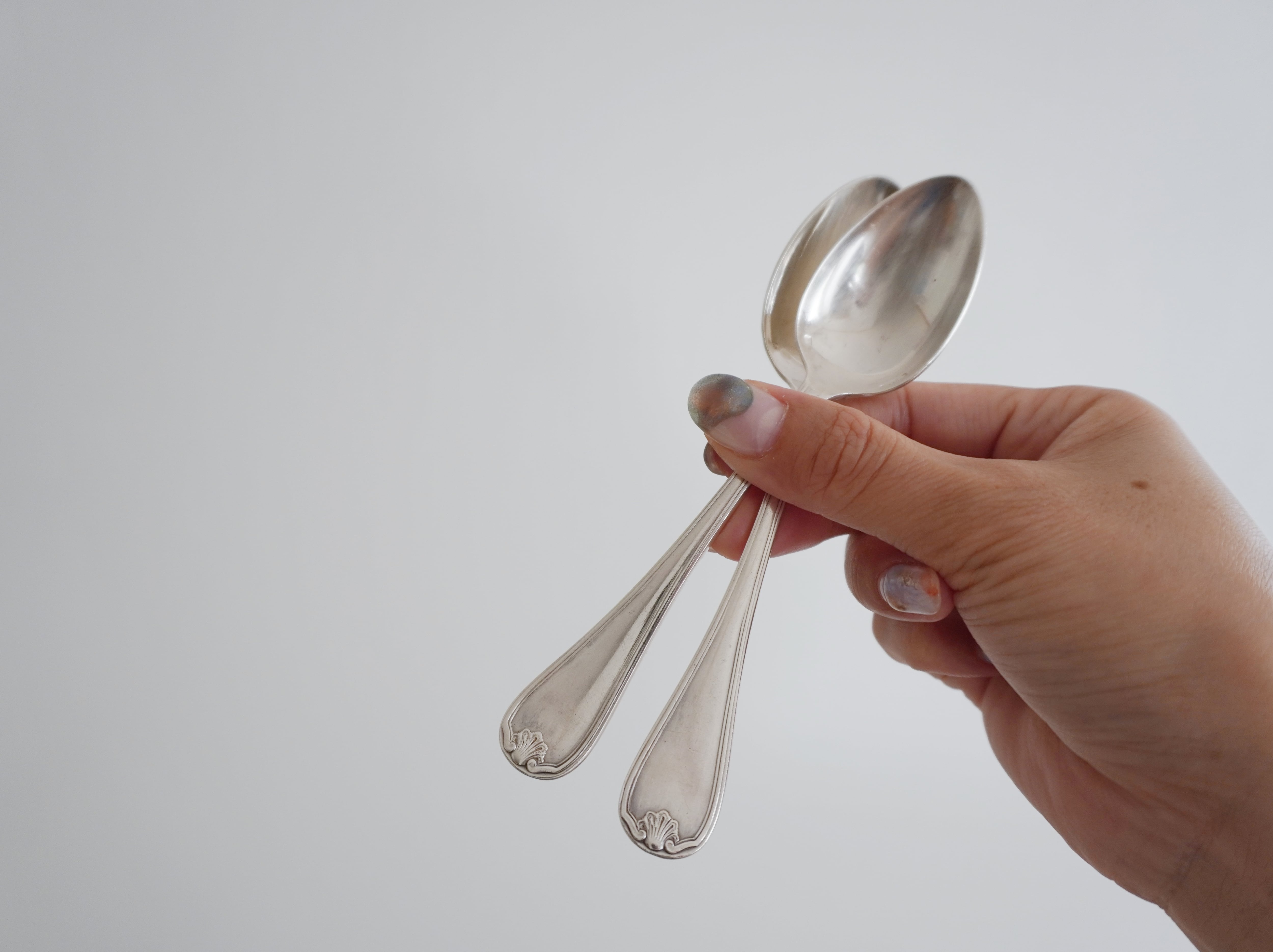 言わずと知れた高級銀食器ブランド Christofleのシルバープレートのスプーン。貝殻の装飾が施されたCoquille Bérainというモデル。