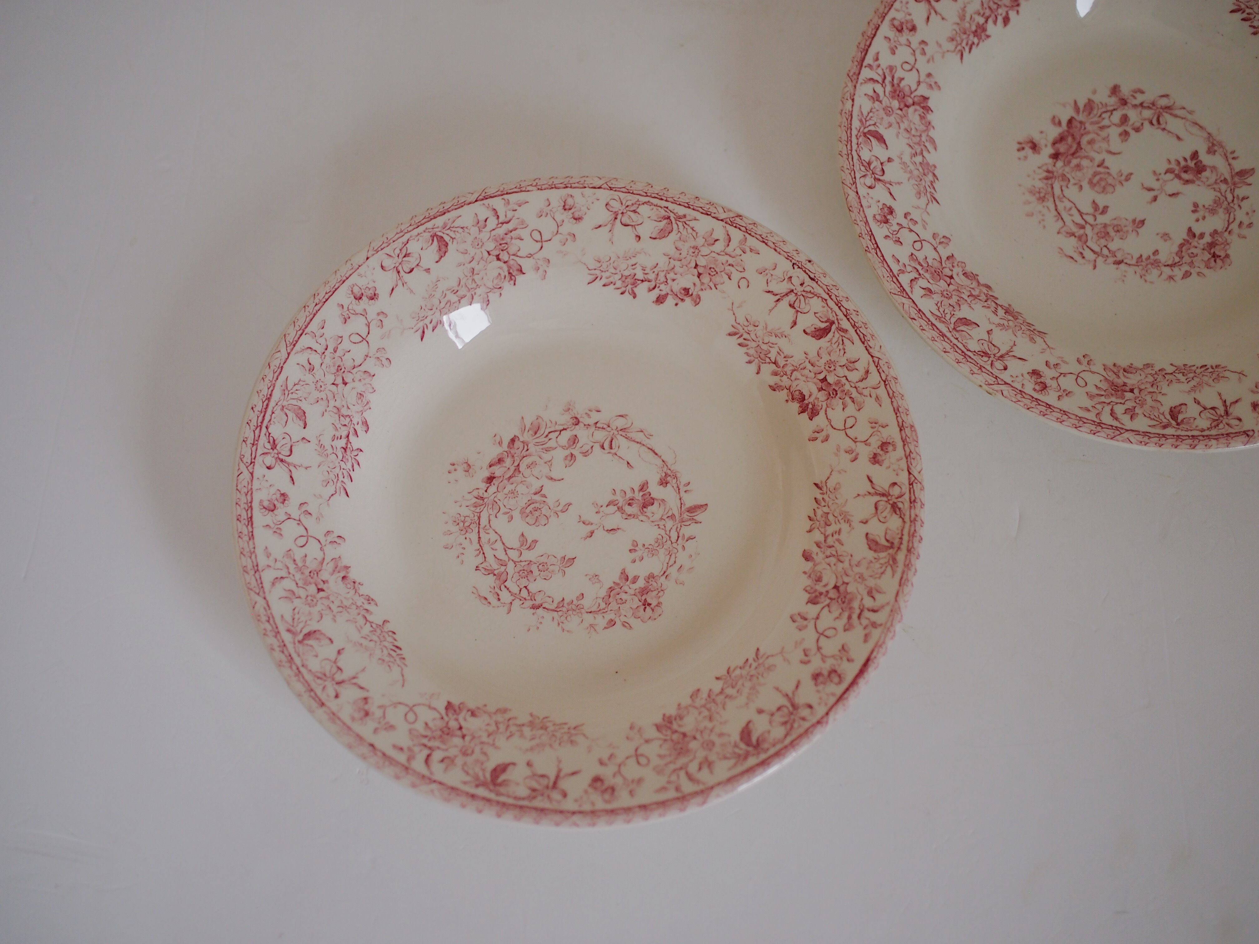 フランスでも人気の高い" Boupuets de Roses " というシリーズ。オフホワイトのテールドフェール(半陶半磁器)に淡い赤で薔薇のガーランドが描かれています。上品で控えめな絵柄ですので、さりげなくお料理を引き立ててくれます。