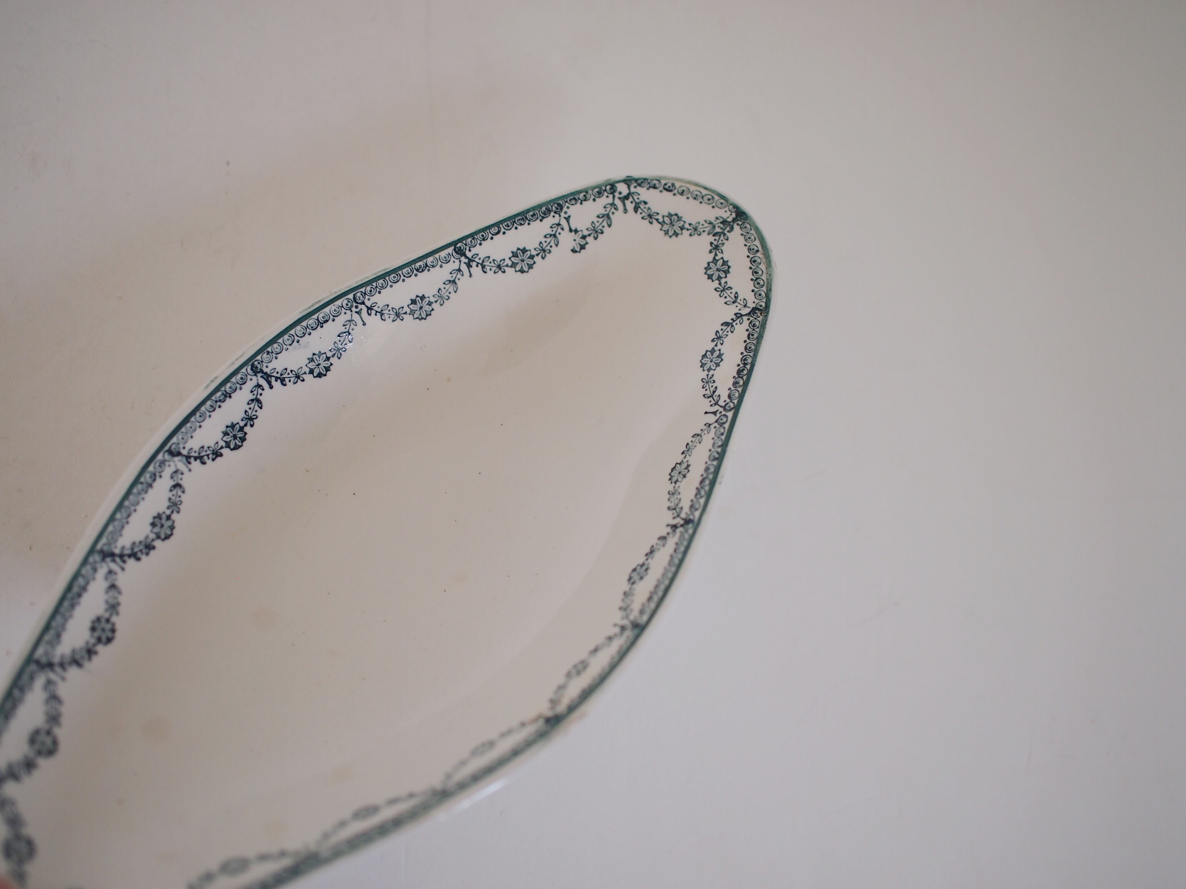 フランス St.amand(サンタマンレゾー)のラヴィエプレート。規則正しいグリーンのガーランド模様が可憐な印象。とても人気の高い模様です。