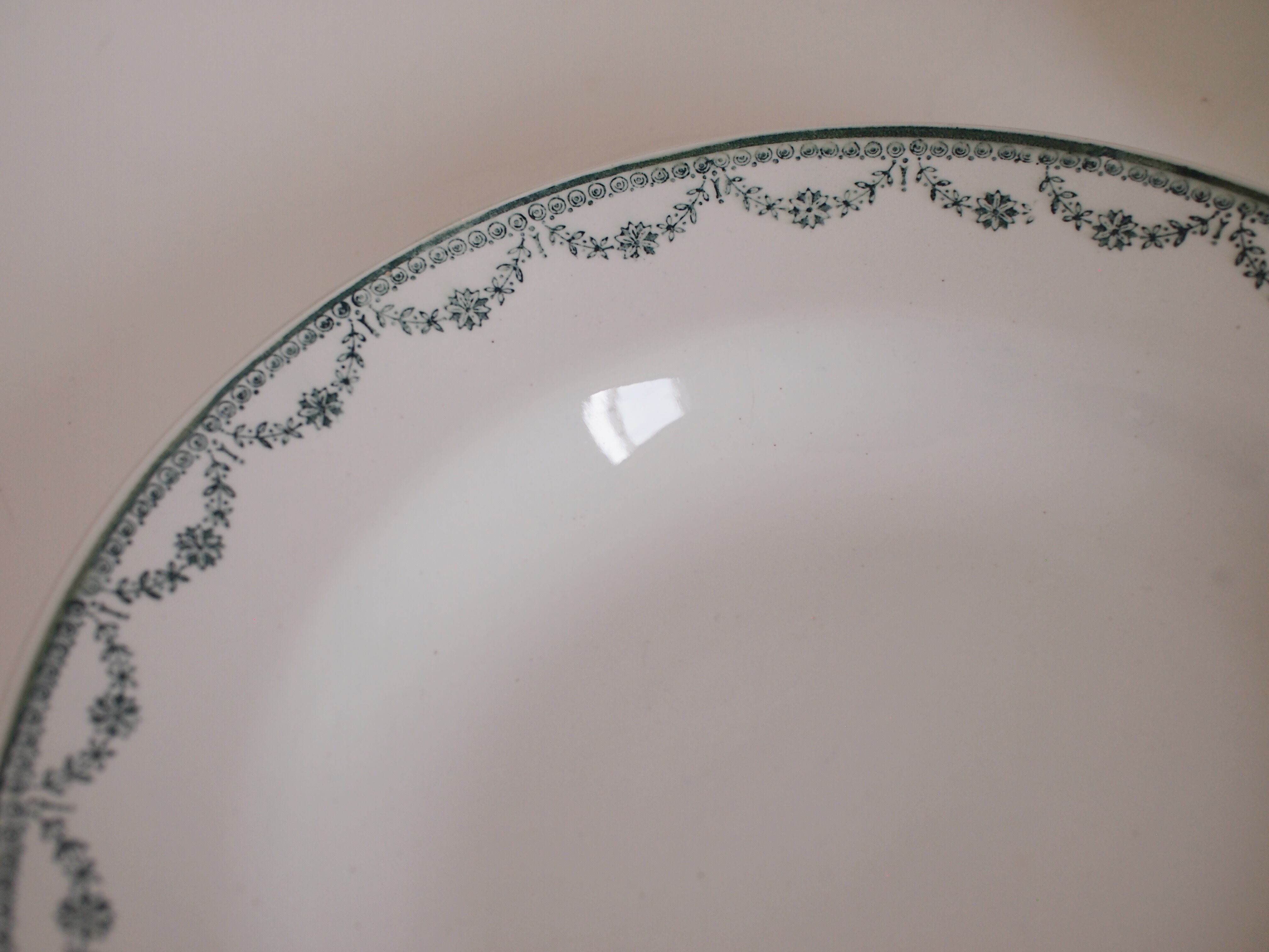規則正しいグリーンのガーランド模様が可憐な印象。とても人気の高い模様です。