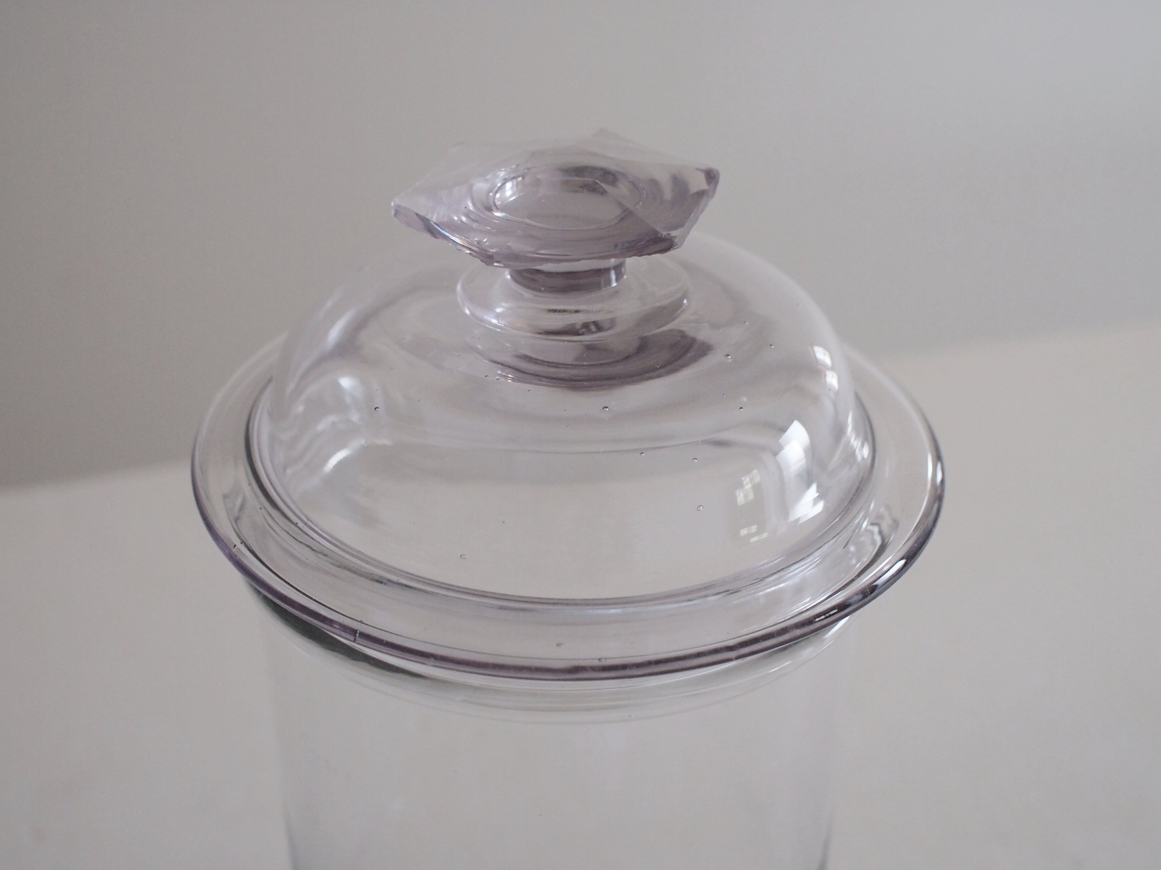 1800年代フランスの薬局で、薬草やハーブを入れて使われていた蓋付きのガラス瓶。ファーマシーポット、薬草瓶などと呼ばれています。