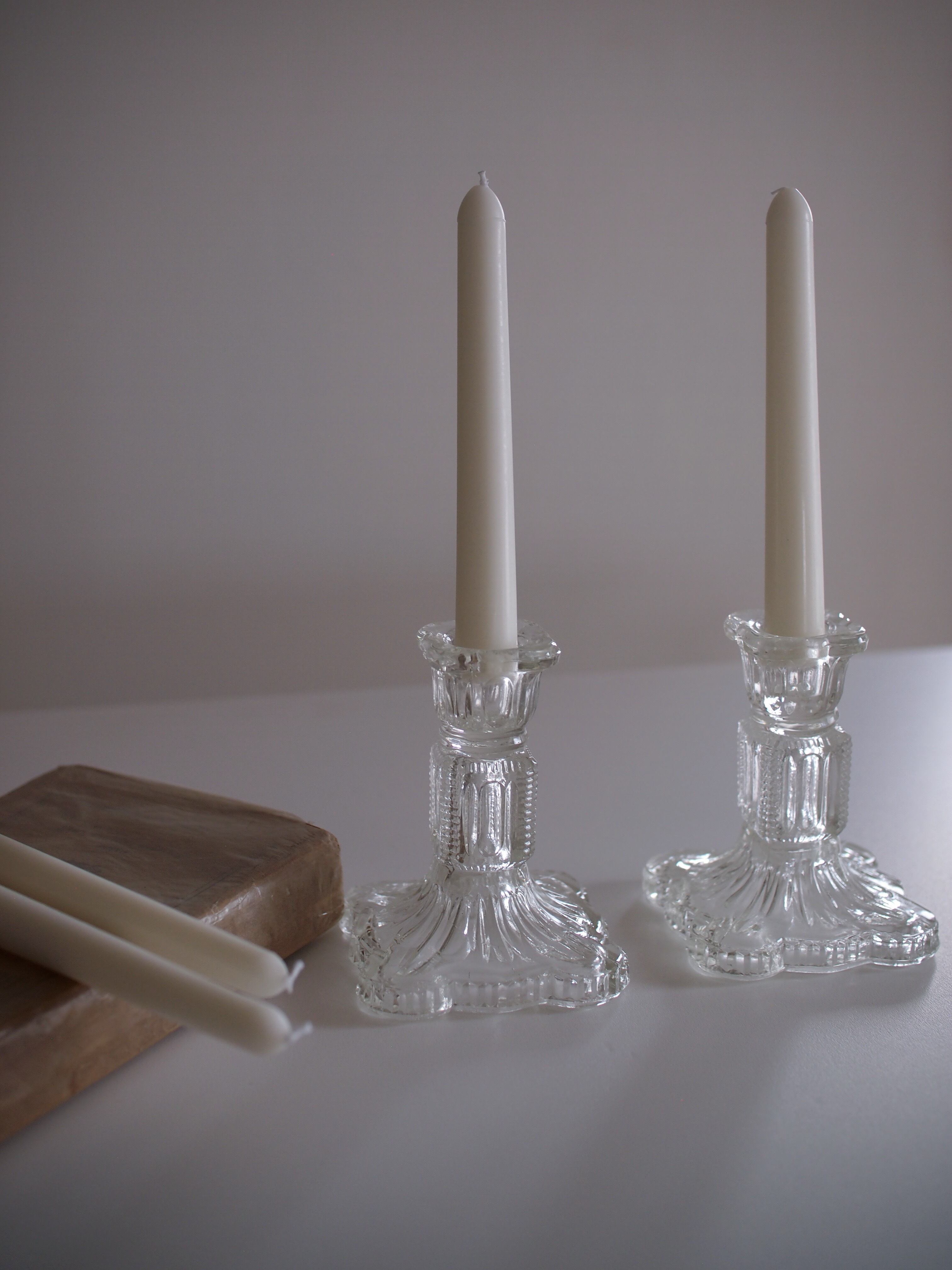 パリの蚤の市で見つけたキャンドルスタンド。どっしりと重厚感のあるガラスです。