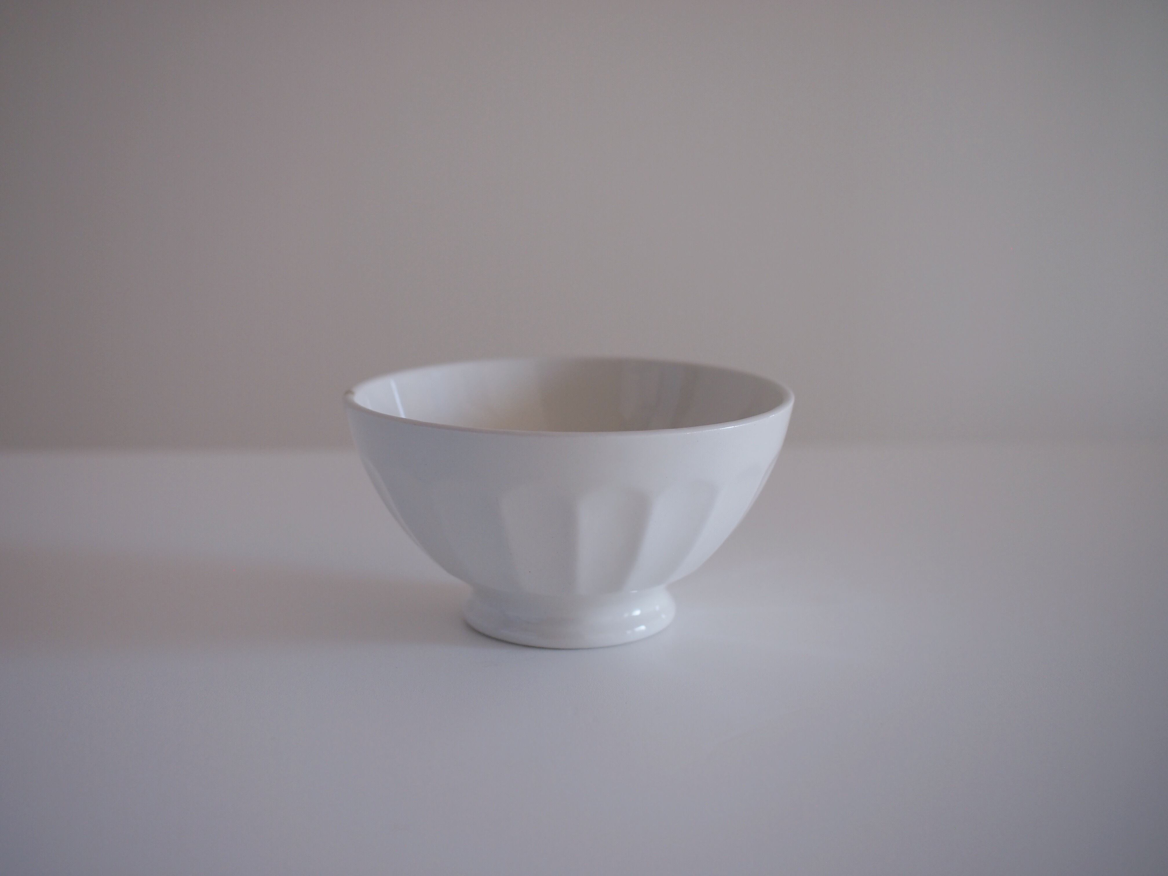 フランスの白い面取りカフェオレボウル。窯元は不明。