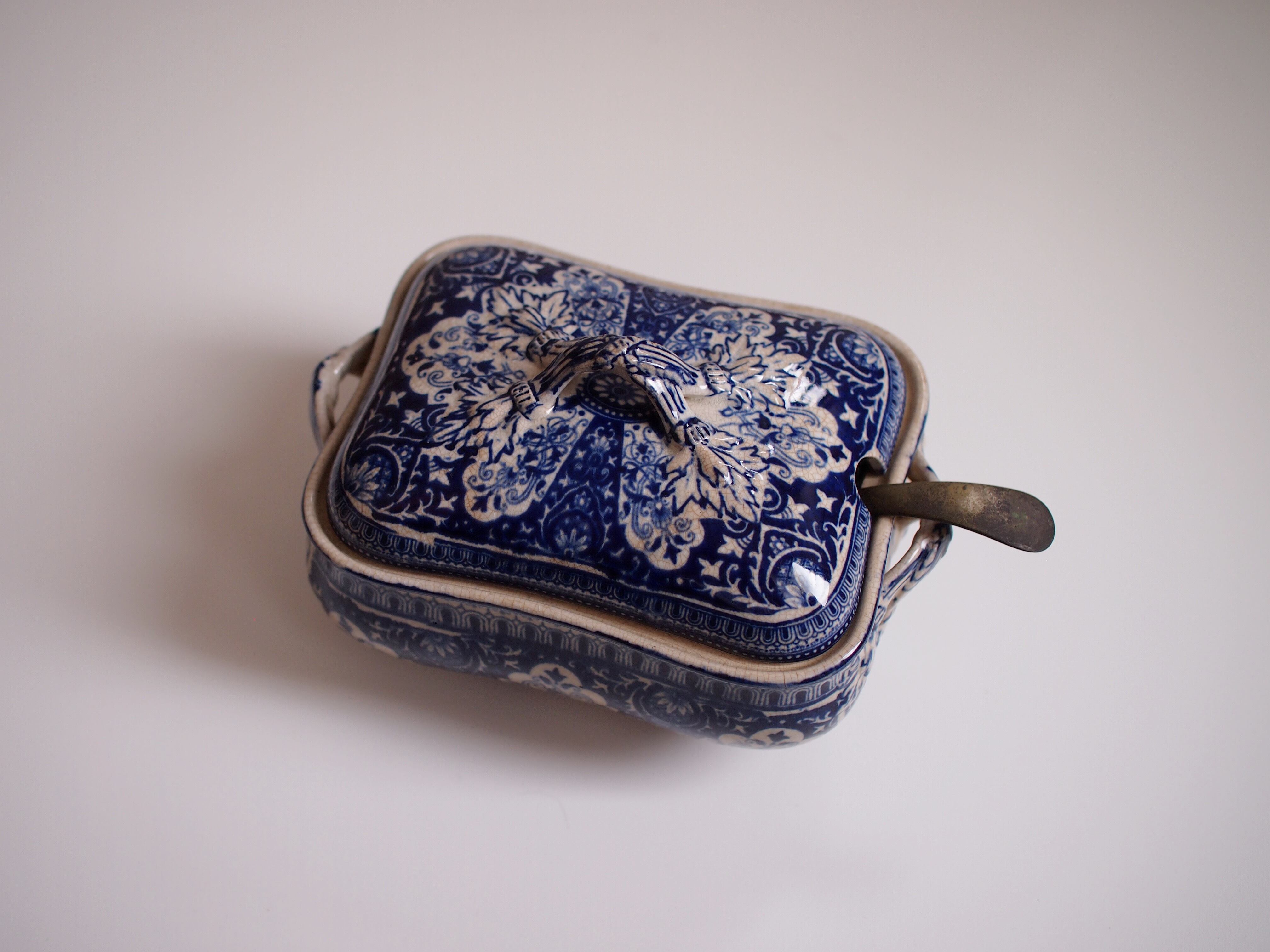 本来は食卓でスープを取り分けるために使う容器ですが、スープに限らずいろんなお料理を入れていただければ。日本の染付との相性も良く、和のしつらえにも馴染むので煮物や和え物を入れても◎