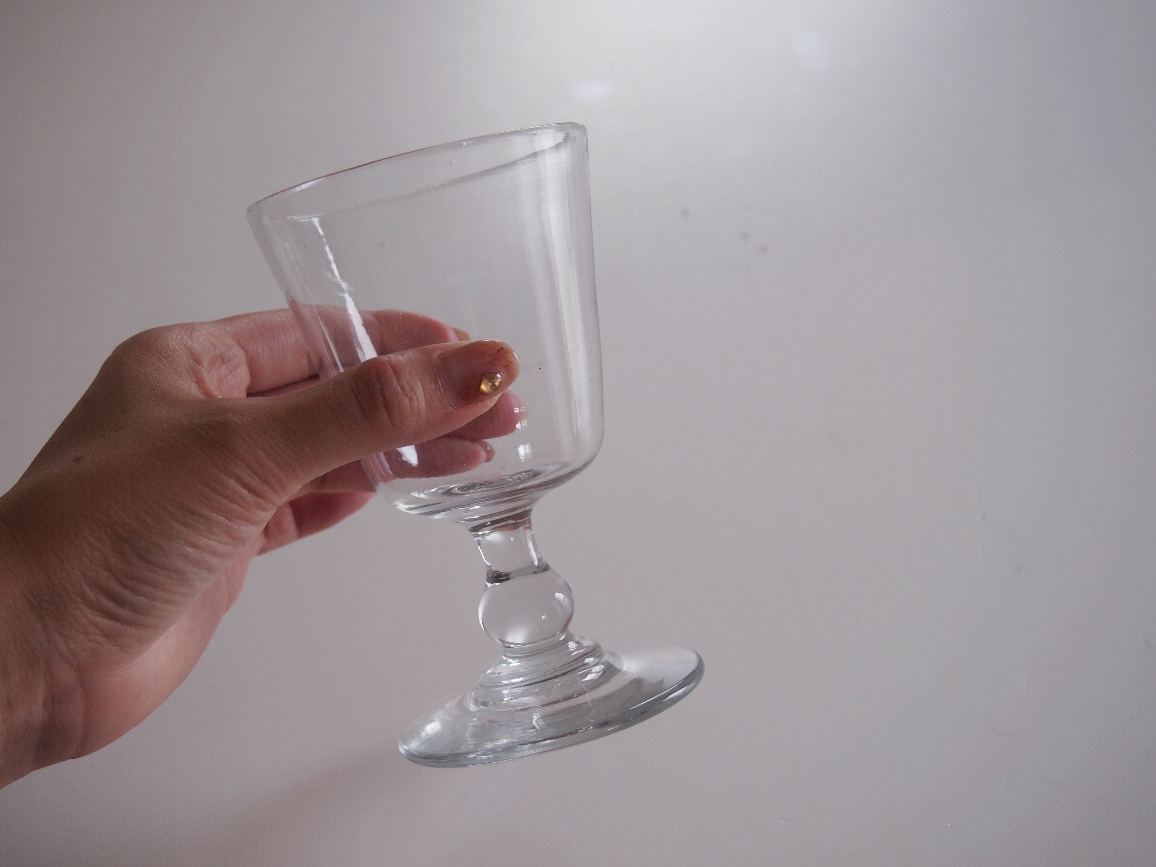 1800年代フランス、職人の手によって作られた手吹きガラスのワイングラス。とろんとしたゆらゆらガラスがかわいい。