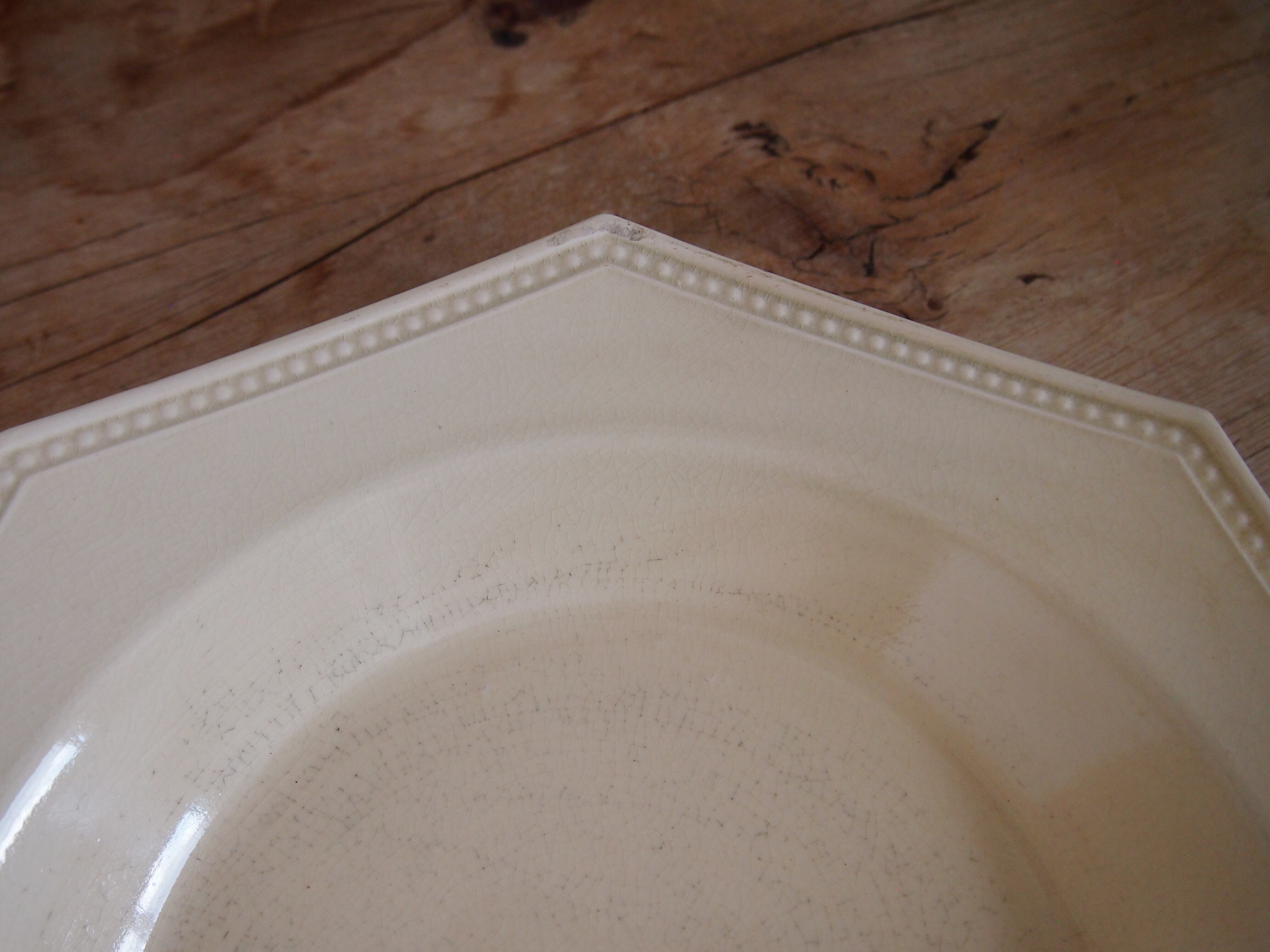 フランス Creil et Montereau (クレイユ エ モントロー)のオクトゴナルプレート。やわらかなエクリュ色のやさしい佇まいです。