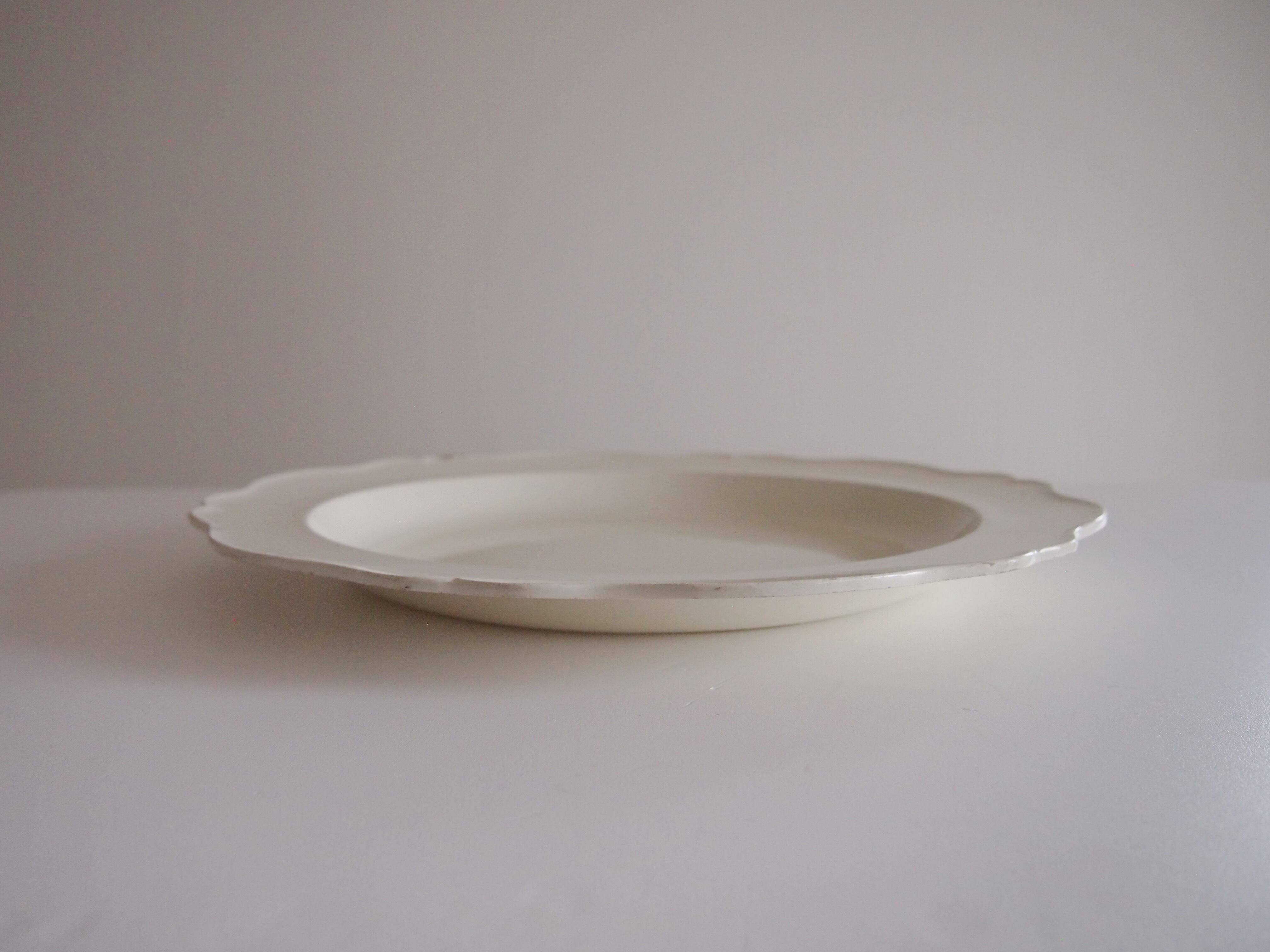 古き時代のクリームウェアらしい象牙色の肌は、しっとりとなめらかで落ち着いた艶があり、凛とした空気を纏っています。鉛釉がほどこされており、美しい虹色の反射がございます。